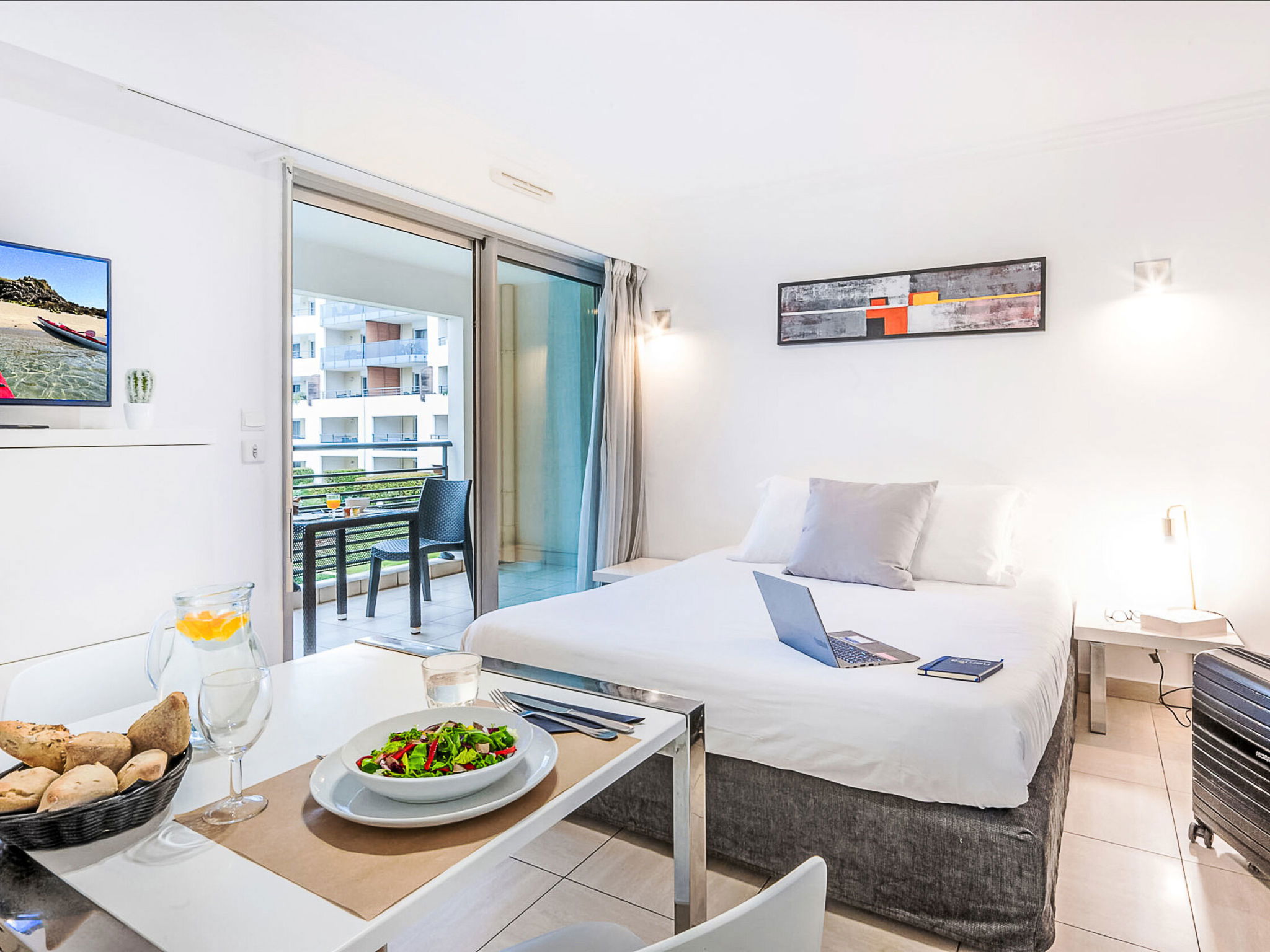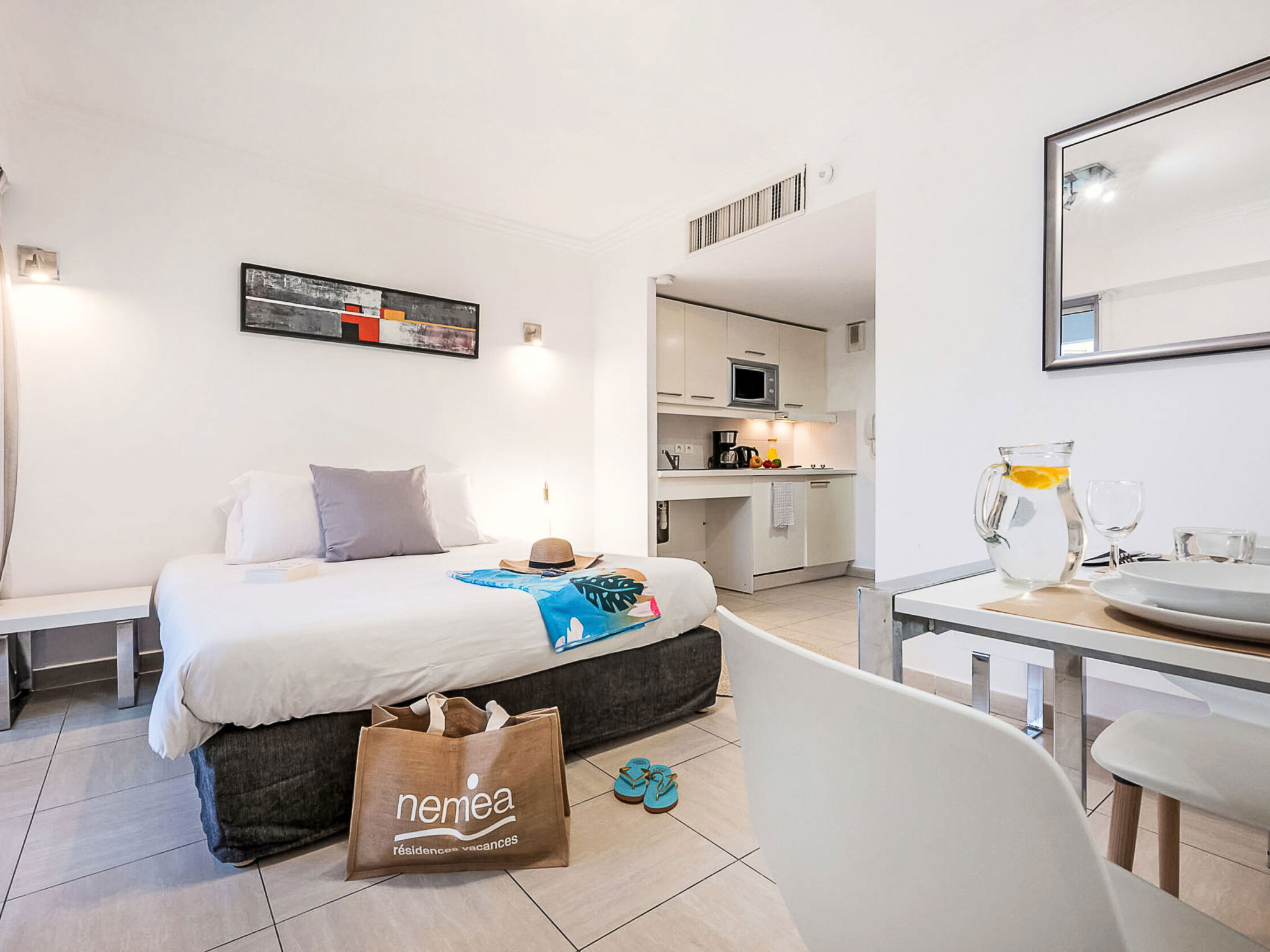 Studio 36 m2. Clair, aménagement agréable: séjour/chambre à coucher avec 1 divan-lit double, table pour les repas et TV. Alcôve ouverte avec 1 x 2 lits superposés. Coin cuisine (lave-vaisselle, 2 plaques vitrocéramique, grille-pain, bouilloire électrique, four micro-ondes, cafetière électrique). Salle de bains, WC séparé. Chauffage, air-conditionné. Balcon ou terrasse. Meubles de terrasse. A disposition: Internet (Connexion WIFI, en sus). Veuillez noter: logement pour non fumeurs. Maximum 1 animal/ chien autorisé. Cette location est un exemple de location / d'appartement. En raison du Coronavirus (COVID-19), des mesures pour assurer la sécurité des invités et du staff ont été mises en place dans cette propriété. Certains services et commodités peuvent être réduits ou indisponibles en conséquence. Complexe de vacances moderne "Le Lido", de 5 étages. 100 appartements dans la résidence. À 2 km du centre de Cagnes-sur-Mer, à 10 km du centre de Nizza, à 12 km du centre d'Antibes, situation centrale, à 400 m de la mer. En commun: terrain 5 ha avec pelouse et arbres, piscine (15 x 10 m, 21.03.-07.11.). Douche/WC dans l'espace piscine, terrasse. Infrastructures de la résidence: réception, salle pour petits déjeuners, sauna, salle fitness, massage (en sus). Bains de vapeur (hammam), jacuzzi, billard, ascenseur, lave-linge, sèche-linge (en commun, en sus). Petit-déjeuner possible (en sus). Place de parking (nombre de places limité), garage en commun (en sus). Magasins 100 m, plage de graviers 400 m. Terrain de golf (18 trous) 10 km.