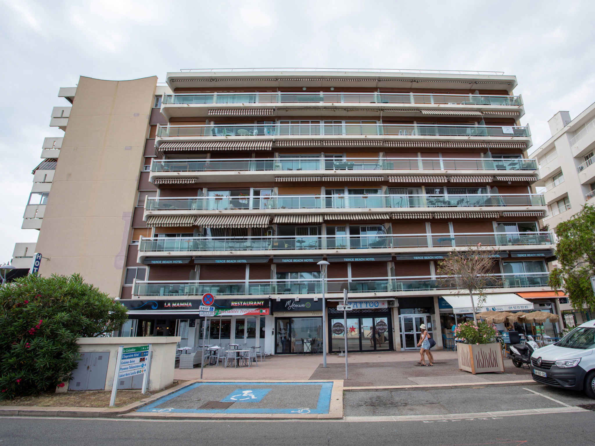 Résidence "Le Tiercé", de 6 étages. Situation animée dans un quartier résidentiel, à 50 m de la mer, à, de la plage. Magasin d'alimentation 600 m, supermarché, centre commercial 3.6 km, restaurant 300 m, boulangerie 350 m, location de bicyclettes 100 m, arrêt de bus 100 m, gare ferroviaire "centre ville" 1.1 km, plage de galets "plage de l'hippodrome" 50 m. Port plaisance 2.6 km, marina 2.6 km. Attractions à proximité: hippodrome de la côte d'azur 100 m, Haut de cagnes 2.1 km, centre commercial polygone riviera 3.6 km, musée Renoir Cagnes 2 km, Nice 10 km.