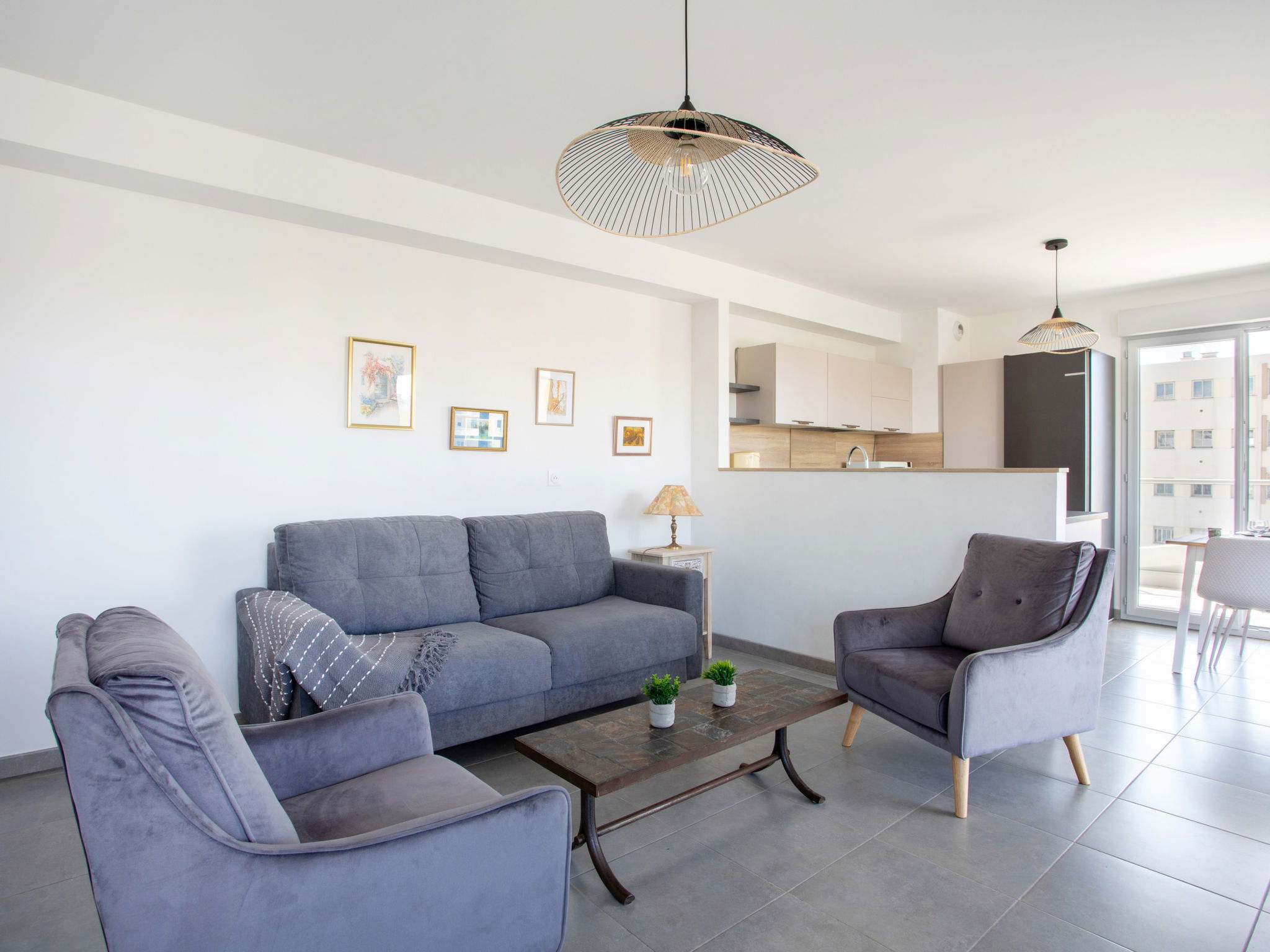 Appartement de 3 pièces 62 m2 au 3ème étage, situation sud-ouest. Clair, aménagement confortable et moderne: séjour/salle à manger avec TV (écran plat). Sortie sur la terrasse. 1 chambre avec 1 grand-lit (1 x 140 cm, longueur 200 cm). Sortie sur la terrasse. 1 chambre avec 1 grand-lit (1 x 160 cm, longueur 200 cm). Sortie sur la terrasse. Cuisine ouverte (four, lave-vaisselle, 3 plaques à induction, grille-pain, bouilloire électrique, micro-ondes, congélateur, cafetière électrique). Sortie sur la terrasse. Douche/WC. Chauffage, air-conditionné. Grande terrasse 44 m2, situation sud et situation ouest. Meubles de terrasse. Vue panoramique sur la localité. A disposition: lave-linge, fer à repasser, sèche-cheveux. Internet (Connexion WIFI, gratuit). Place de parking No 32/33 (2 Voitures). Veuillez noter: maximum 1 animal/ chien autorisé. Détecteur de fumée. Annonce d'un particulier (art 155, IV du CGI). 06027028496HT