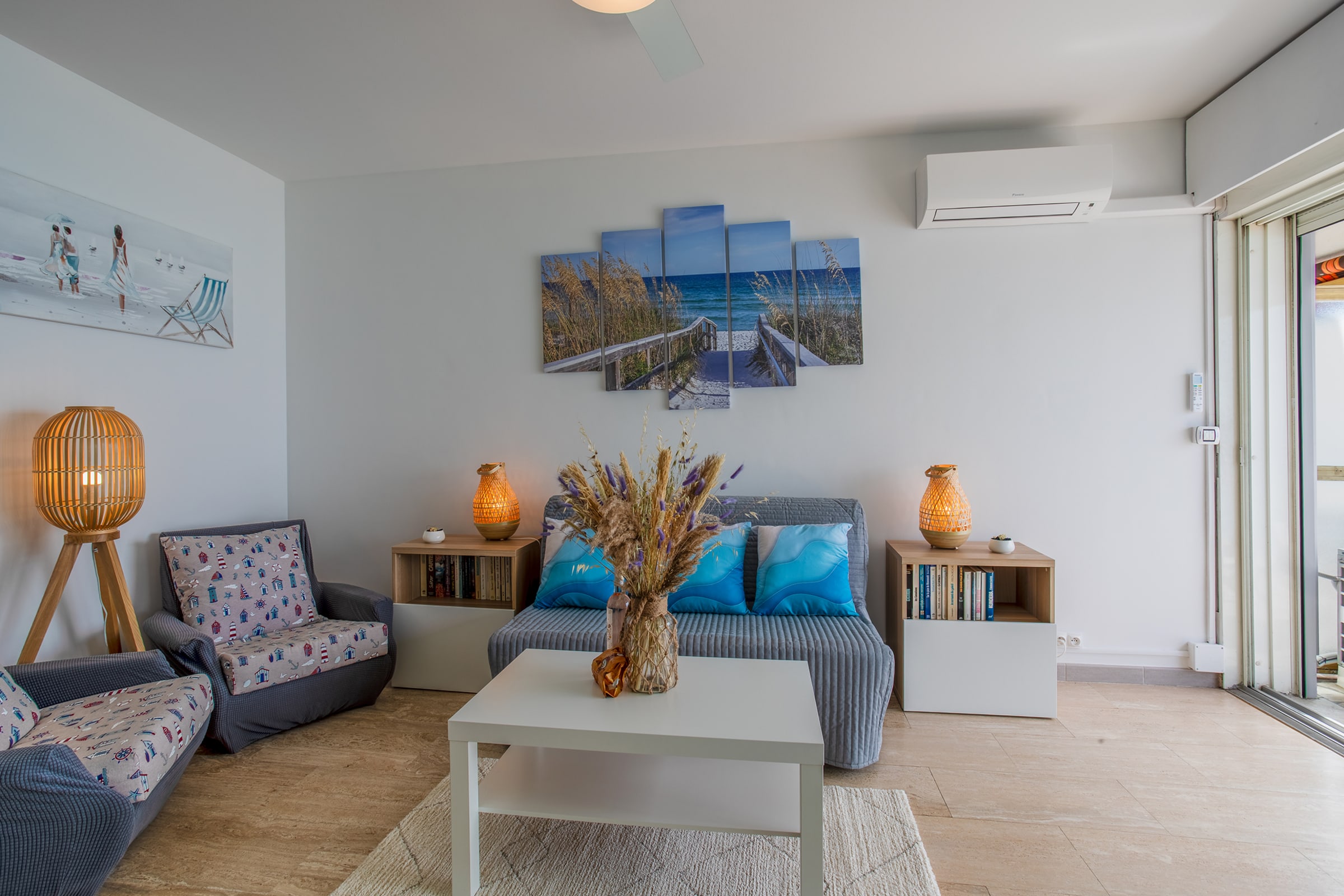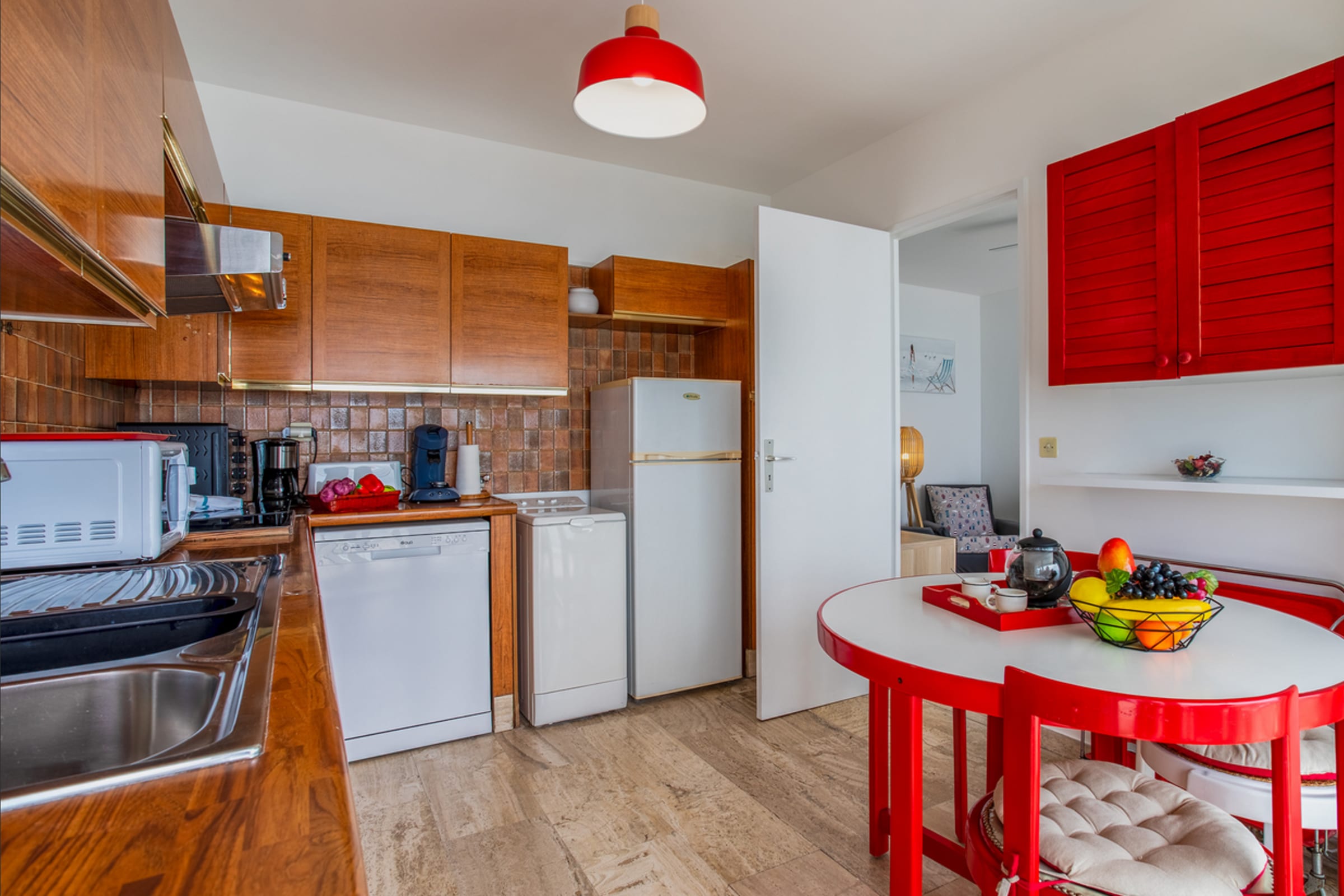Profitez de cet appartement spacieux de 59 m², situé au 6e étage avec ascenseur, pouvant accueillir jusqu'à 4 personnes. Ce logement vous offre un espace de vie lumineux et confortable avec une vue exceptionnelle sur la mer.