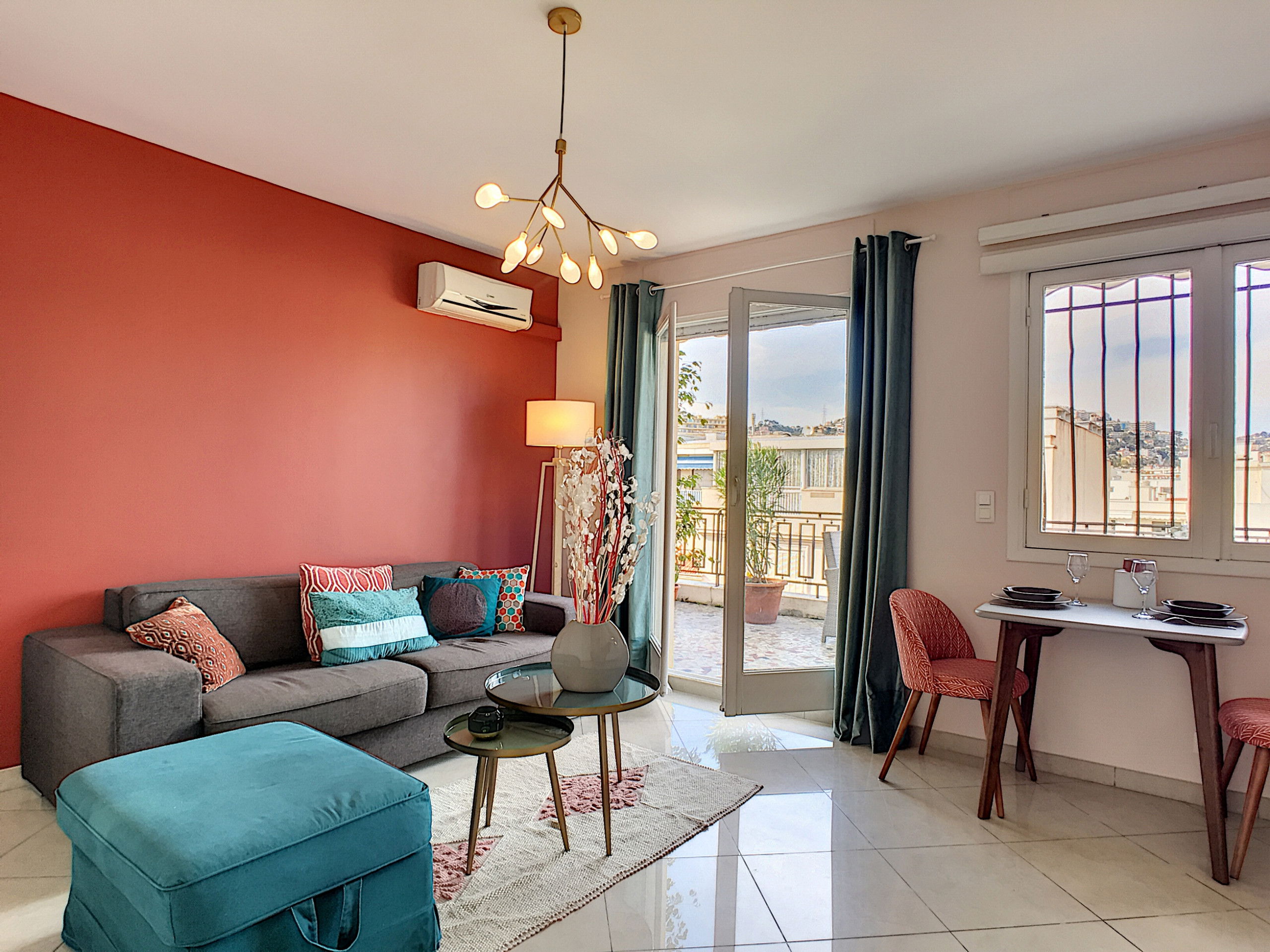 Le logement bénéficie de beaux atouts tels que sa terrasse avec vue dégagée pour profiter du soleil ainsi que son emplacement au centre de Nice à quelque secondes de la Promenade des Anglais.