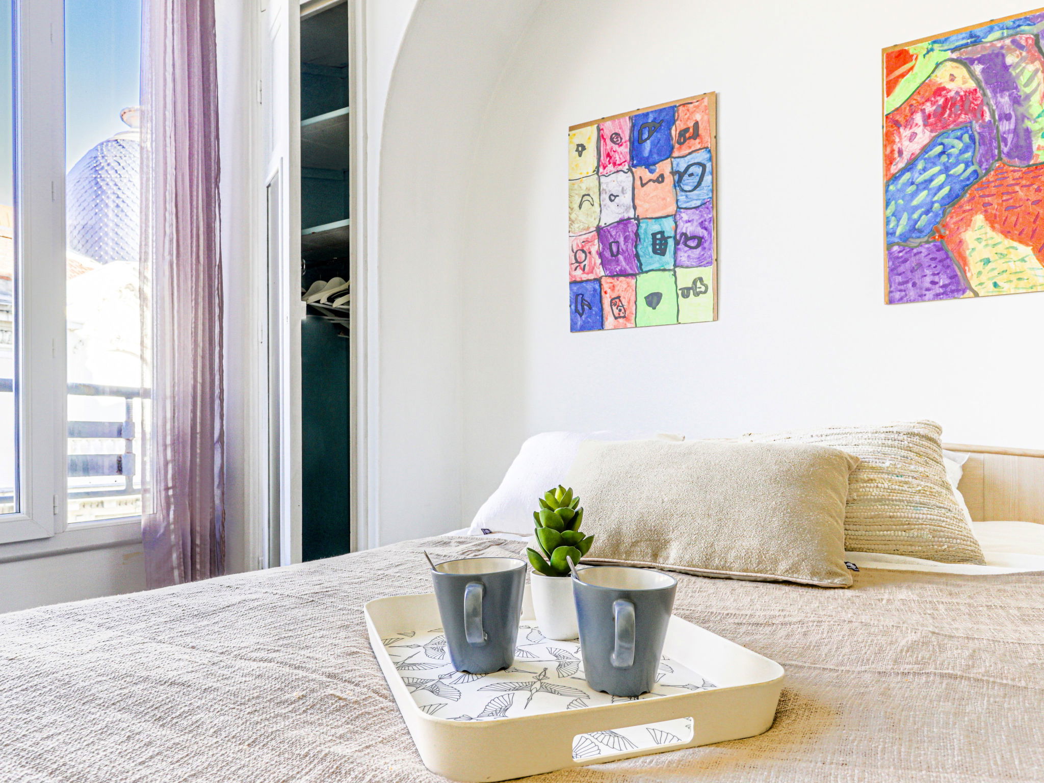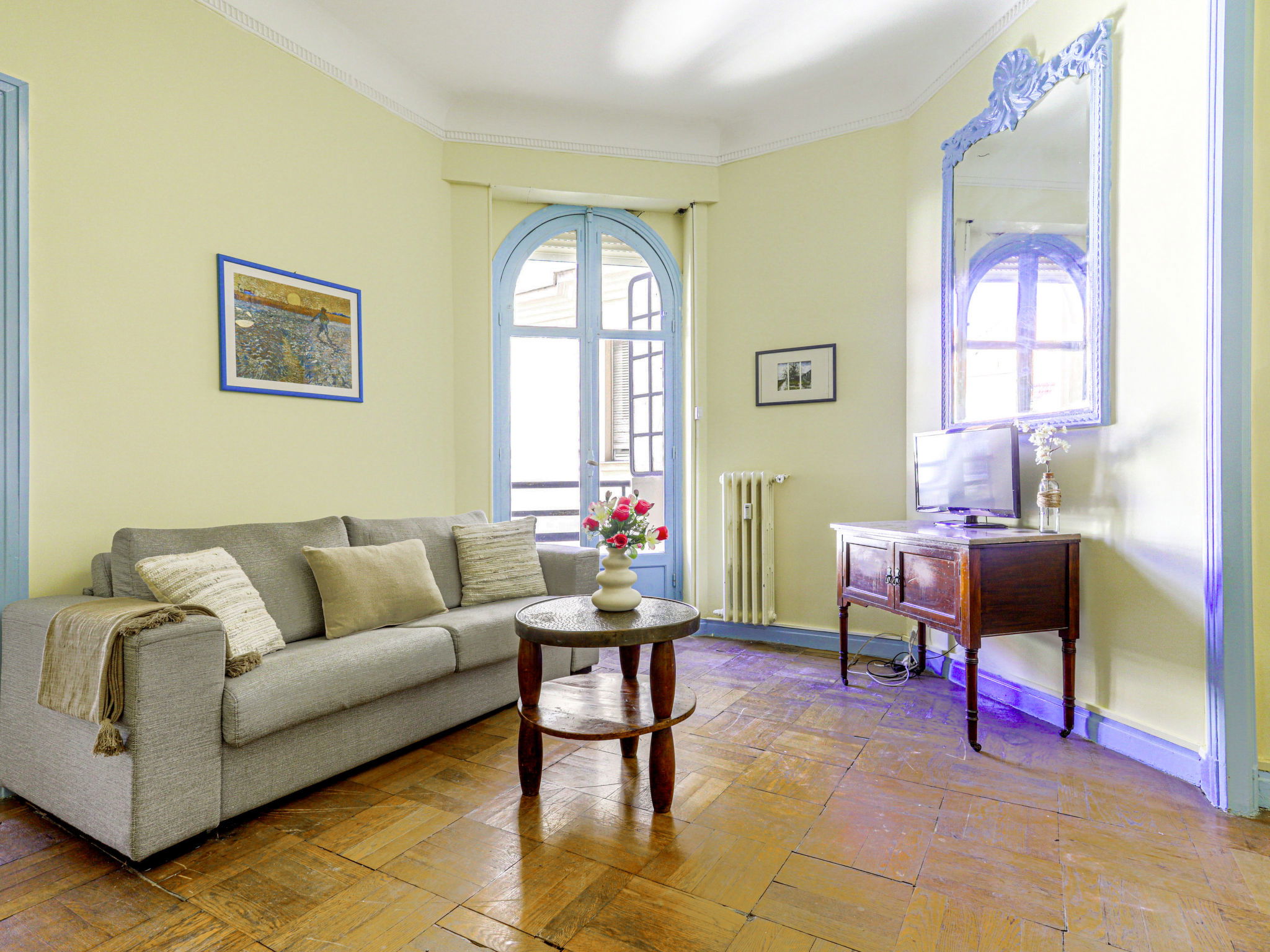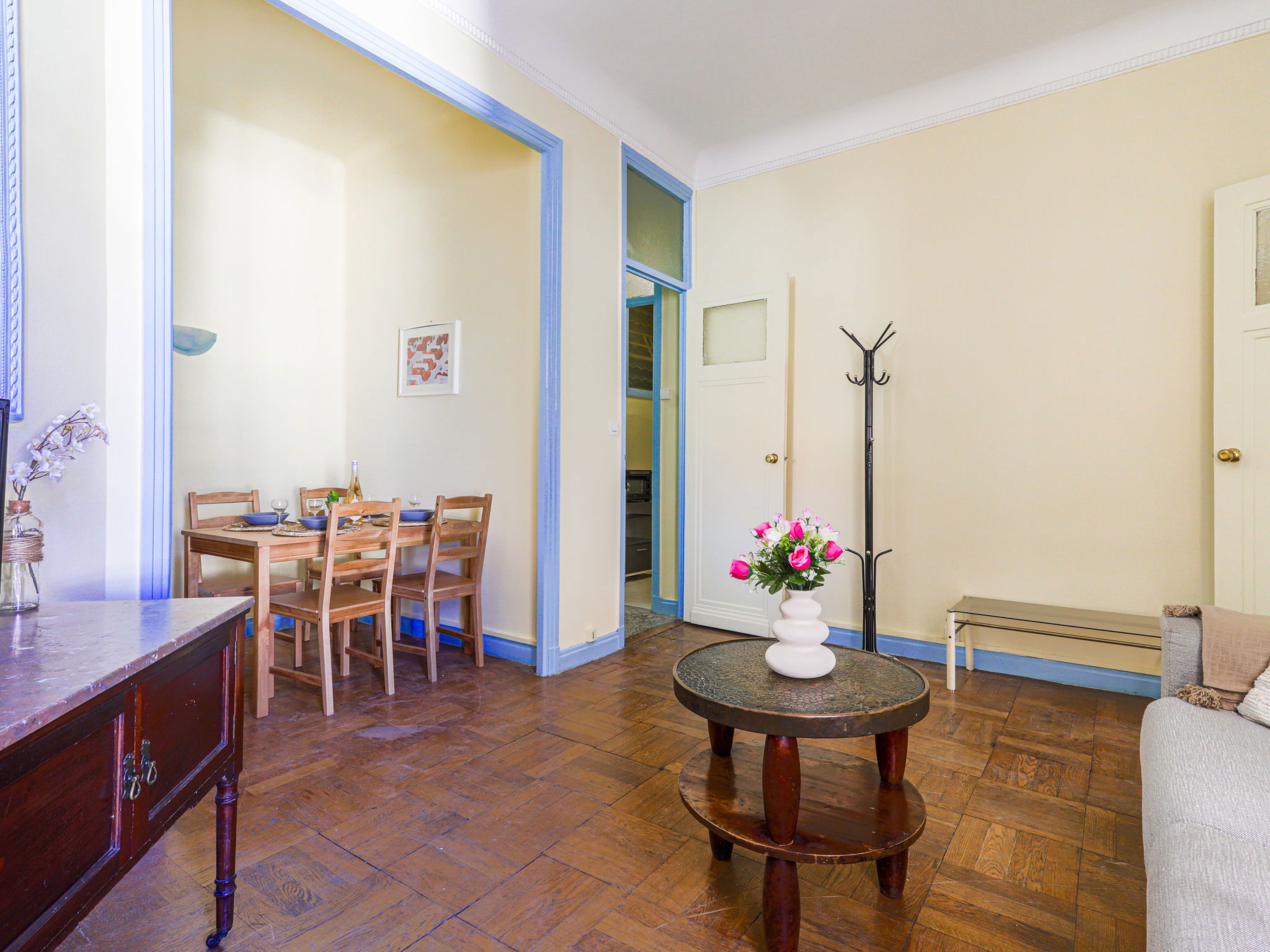 Immeuble "Les Colisées", de 7 étages. Dans le quartier de Musiciens, situation centrale, animée, à 650 m de la mer, à 650 m de la plage. Infrastructures de la Maison: ascenseur. Magasin d'alimentation 130 m, supermarché, centre commercial 750 m, restaurant 30 m, boulangerie 50 m, zone piétonne 500 m, location de bicyclettes 50 m, centre à 12 minutes à pieds, tramway 500 m, arrêt de bus 260 m, gare ferroviaire 550 m, plage de galets "publique" 650 m. Terrain de golf (18 trous) 21 km. Attractions à proximité: Place Masséna 1 km, Cours Saleya/Vieux Nice 1.5 km, Musée Art Moderne et Art Contemporain 1.7 km, Chateau de Nice 2 km, Arènes de Cimiez 3.6 km, Mont Boron 4 km. Les lacs connus sont facilement accessibles: Saint Cassien 60 km. Région de randonnées: Col de Vence 30 km, Parc National du Mercantour 56 km.