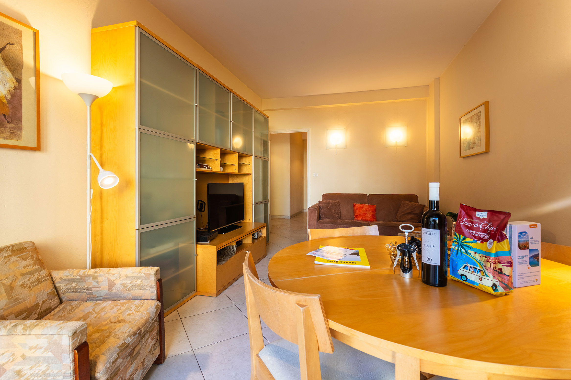 Il se compose d'un beau salon /salle à manger avec un canapé-lit double de 140 cm d'une cuisine séparée entièrement équipée, d'une chambre avec un lit 160 cm et d'une salle de bain avec baignoire et d'un toilette indépendant.