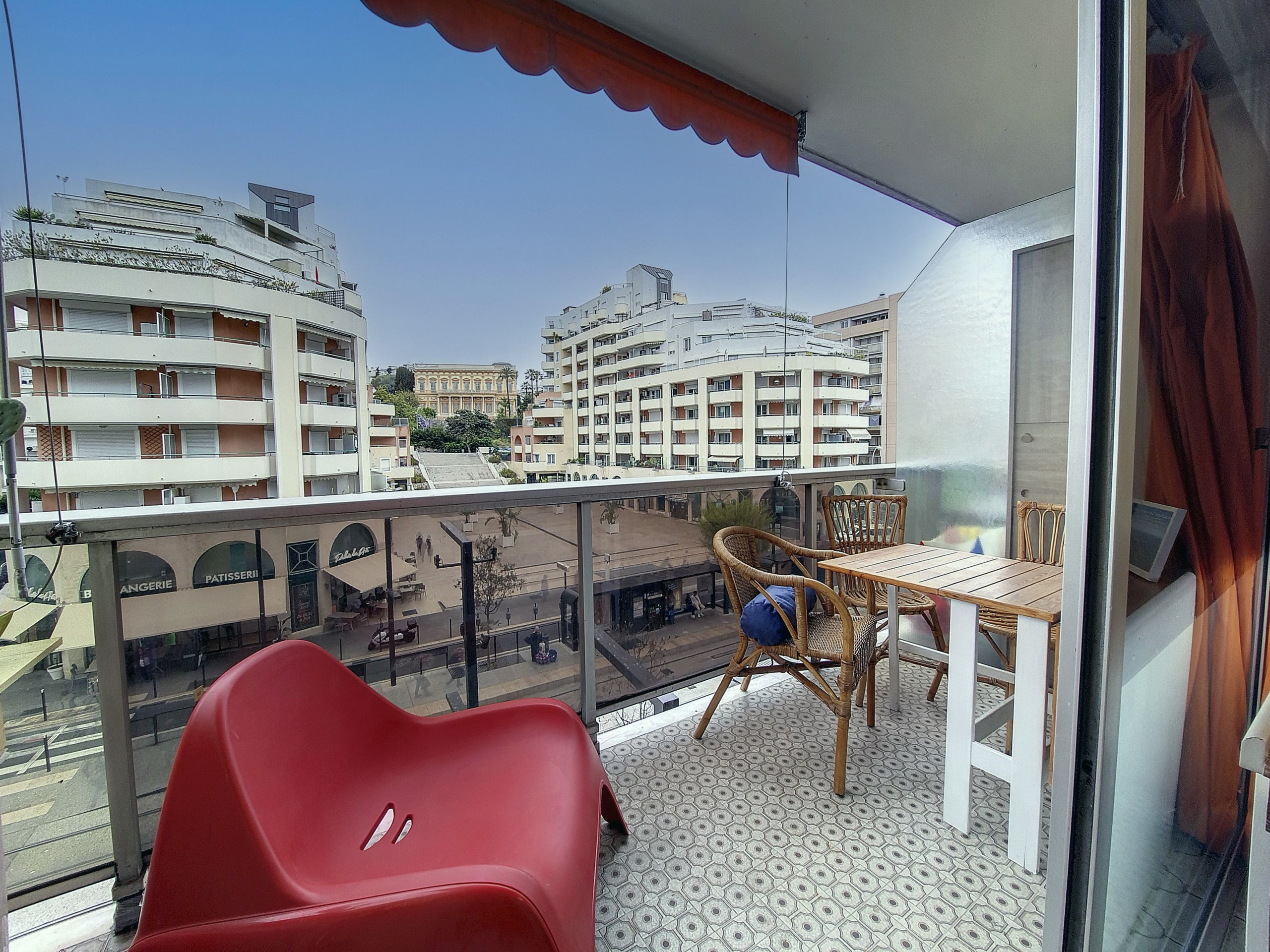 Joli appartement climatisé avec une terrasse. Il a une localisation idéale à quelques pas de la Promenade des Anglais et ses nombreuses plages. L'arrêt de tramway "Centre Universitaire Méditerranéen", à 2 arrêts de l'hyper centre se trouve au pied de l'immeuble.