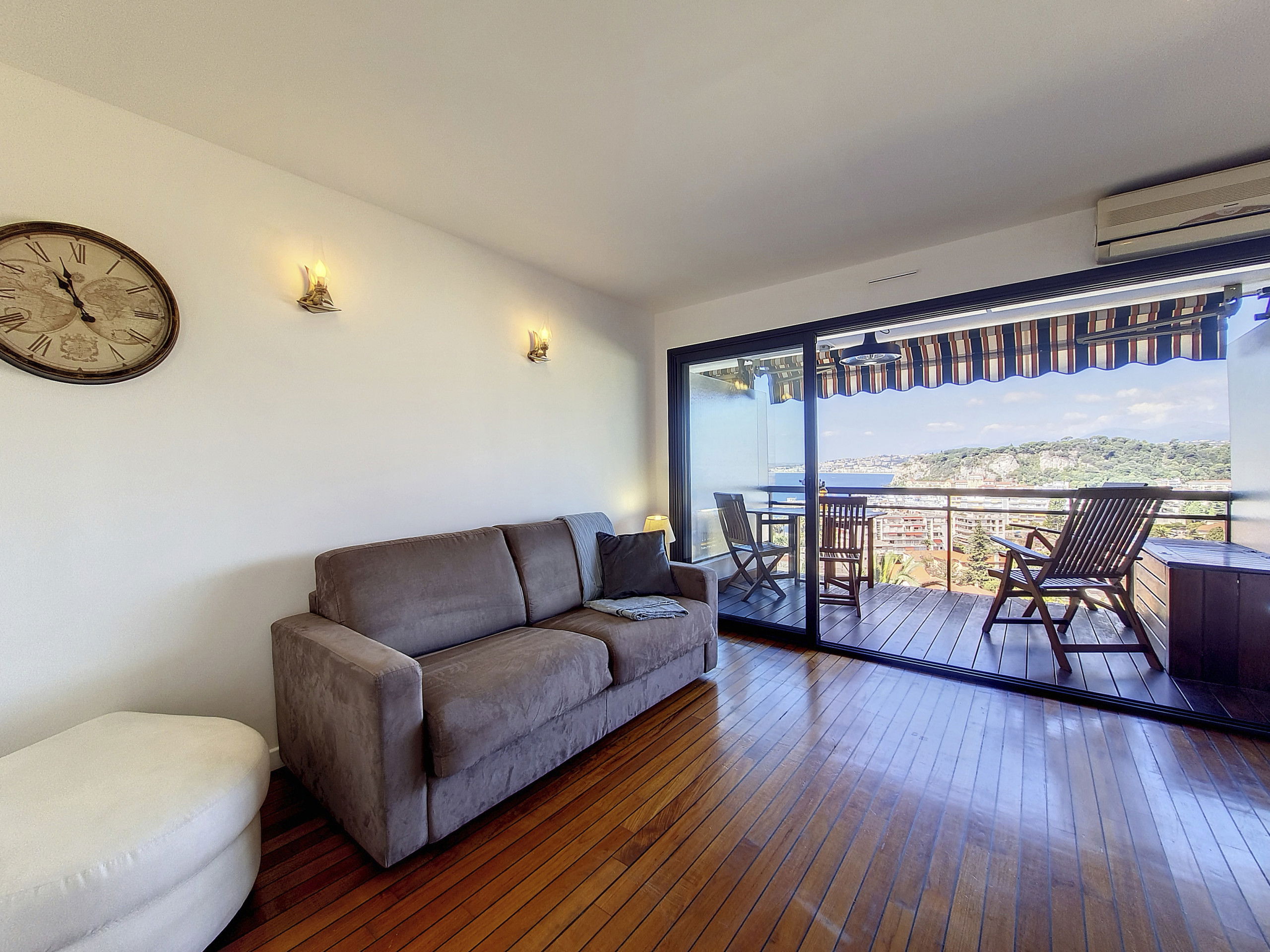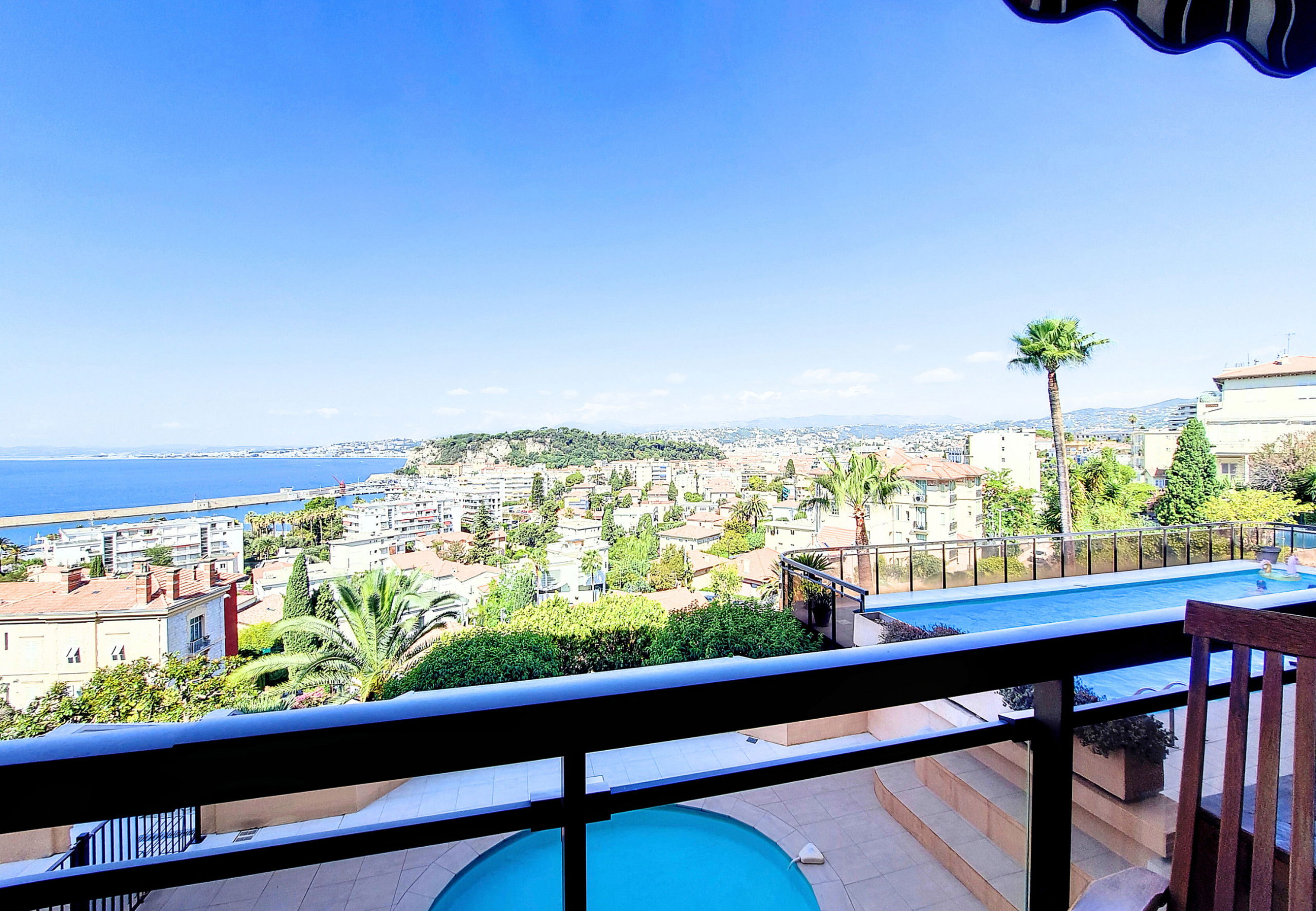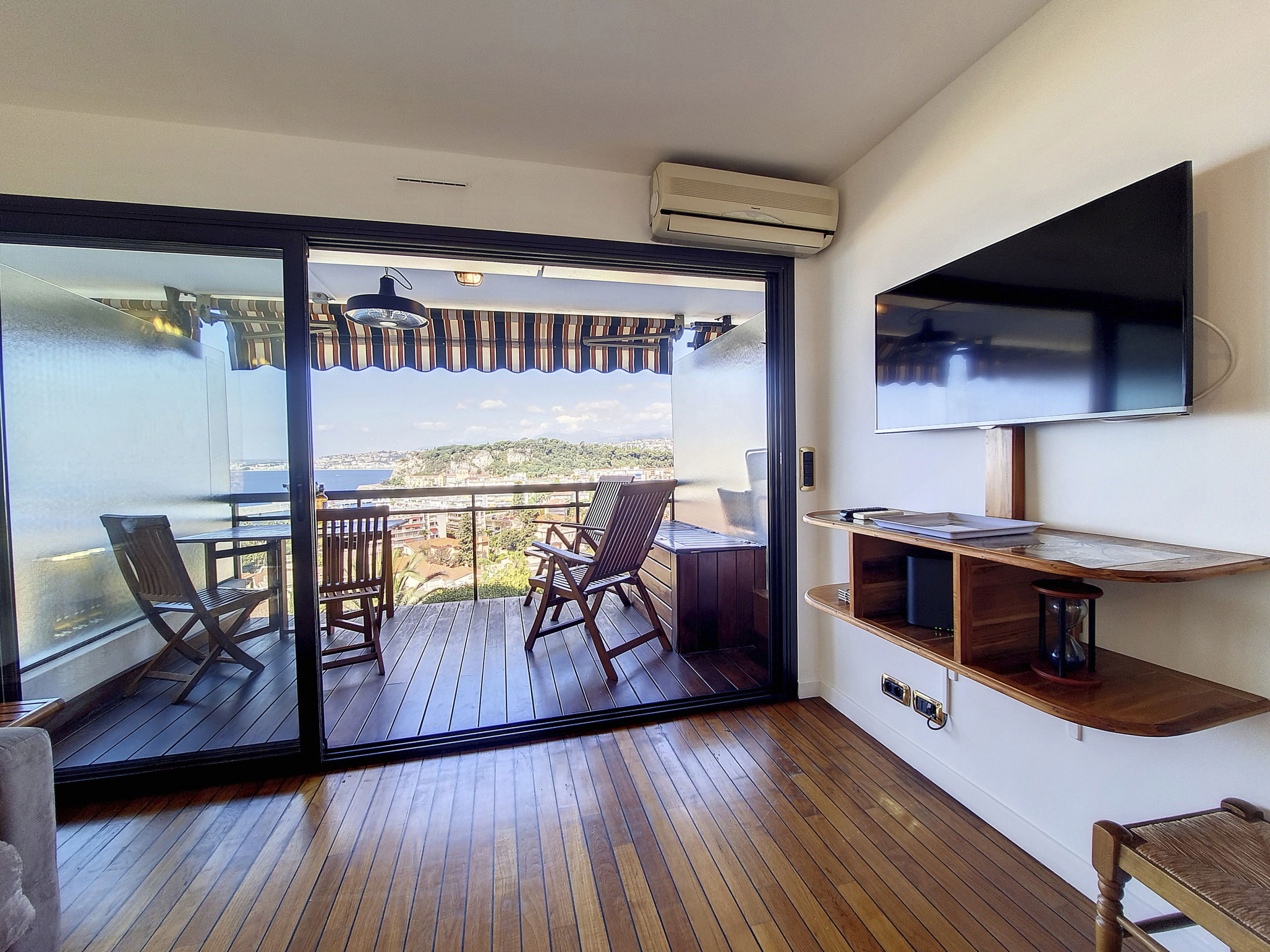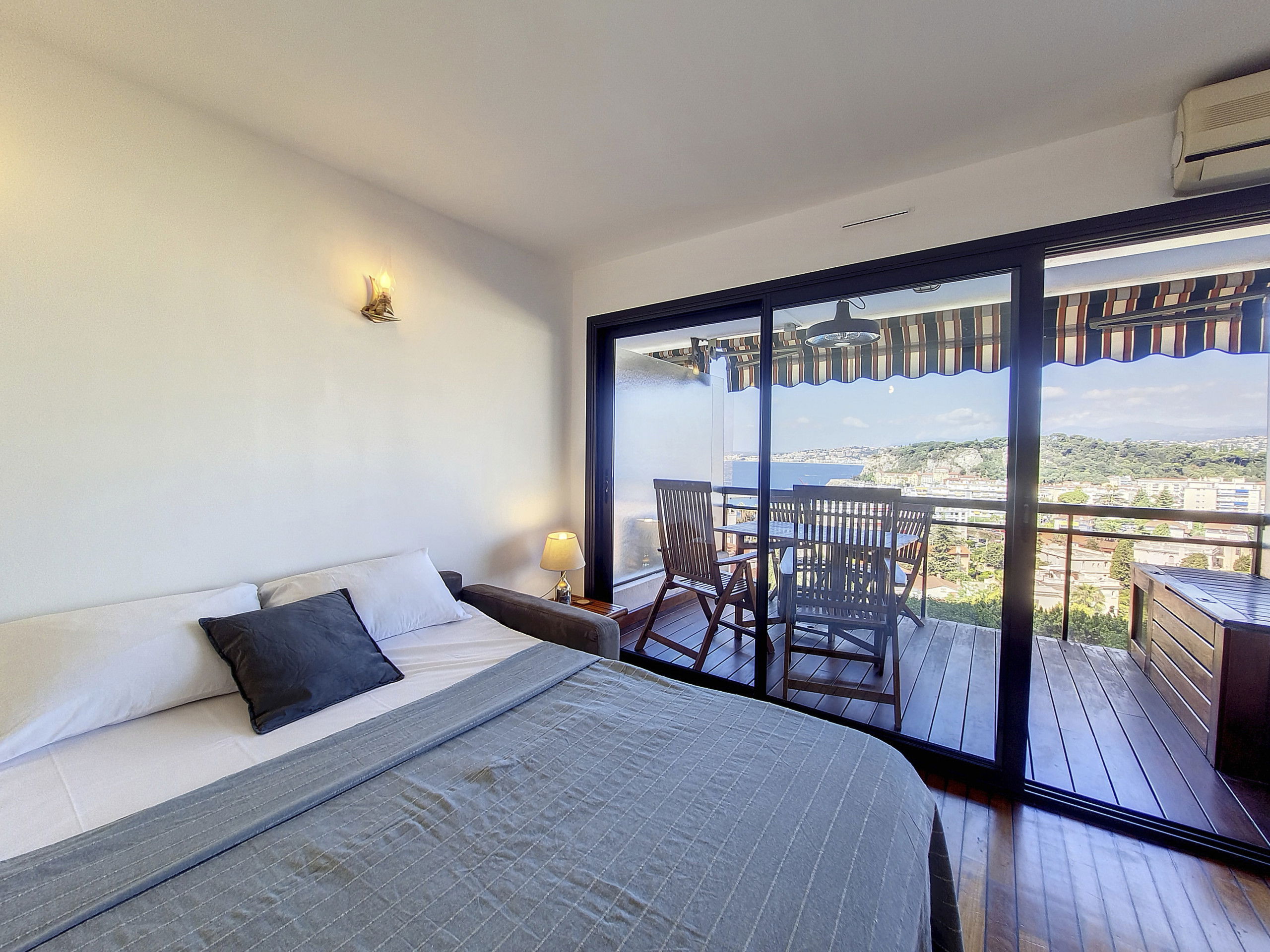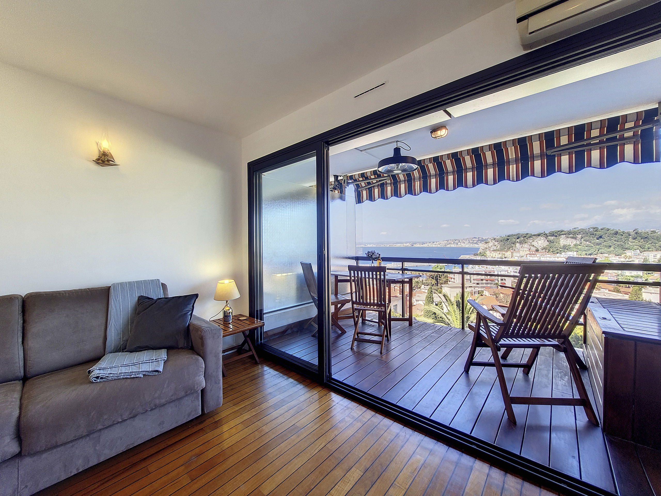 Depuis le séjour ou la terrasse vous profiterez d'une magnifique vue sur la mer et sur Nice.
