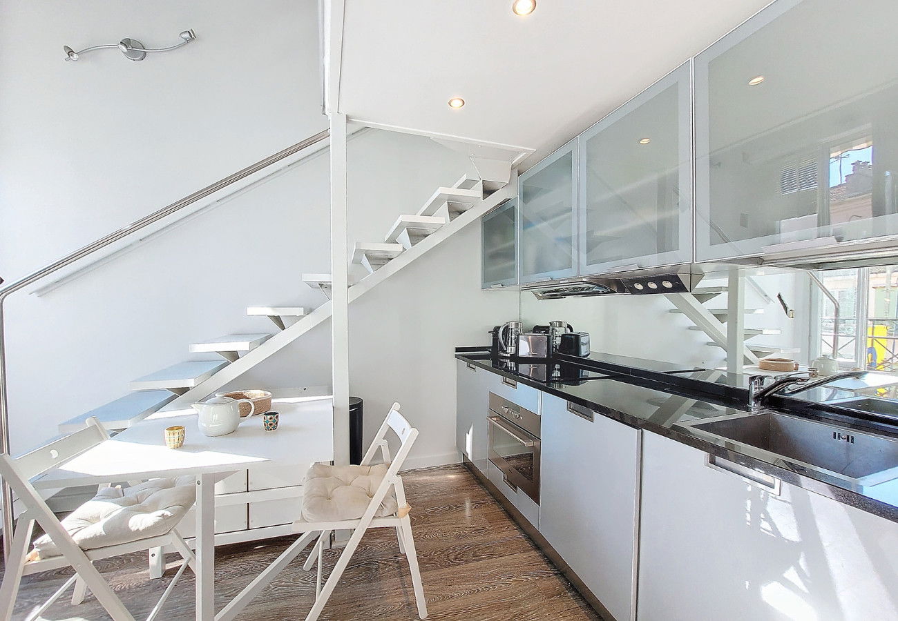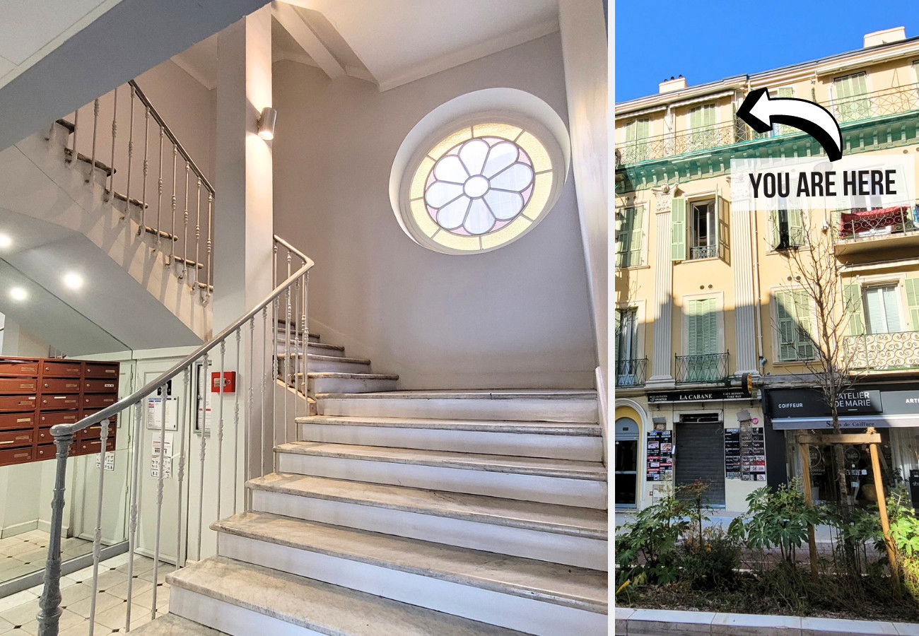 L'appartement est au 3ème et dernier étage avec ascenseur d'un petit immeuble niçois.