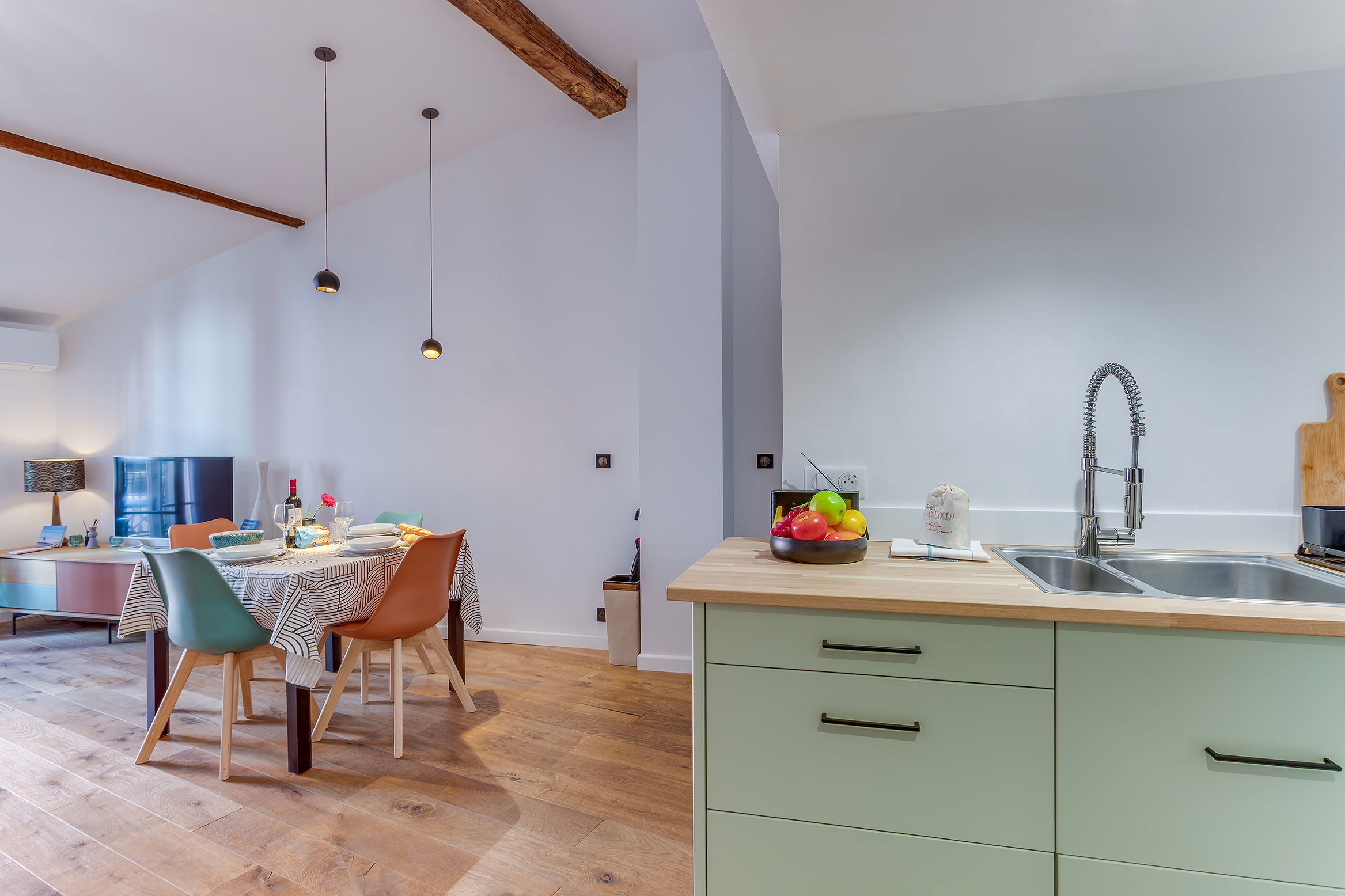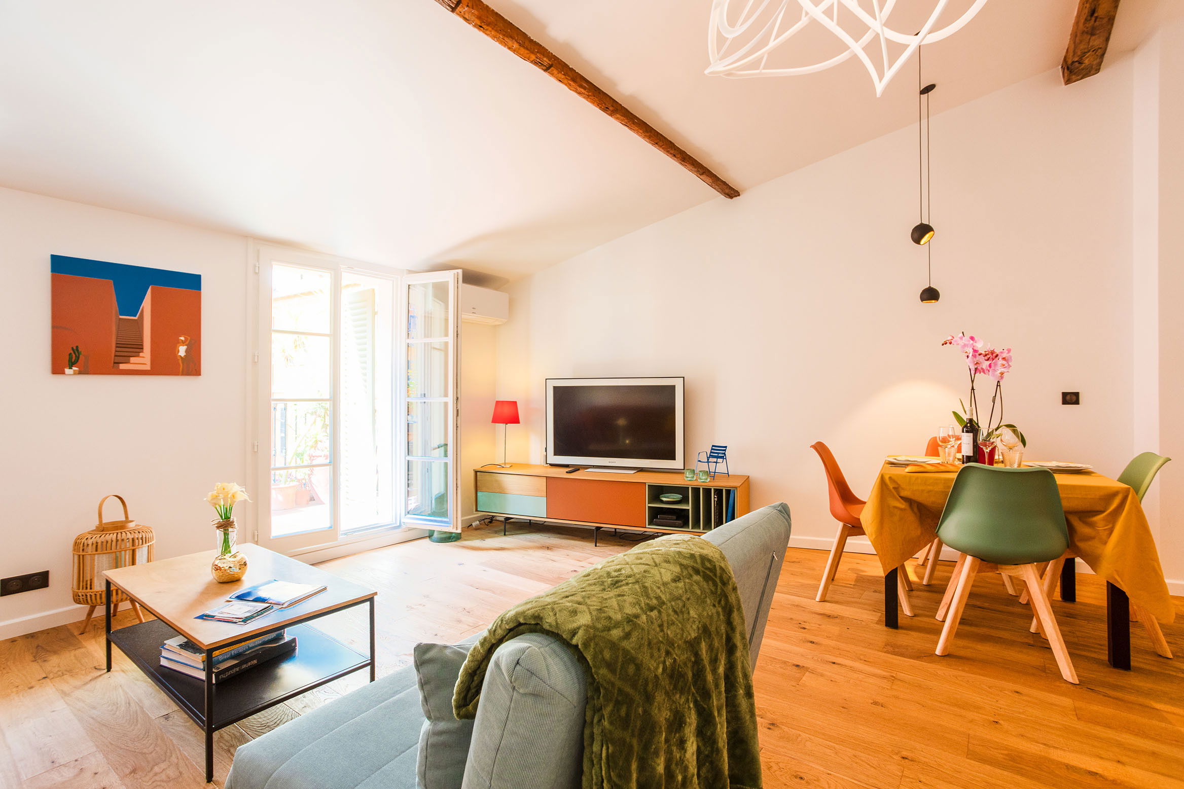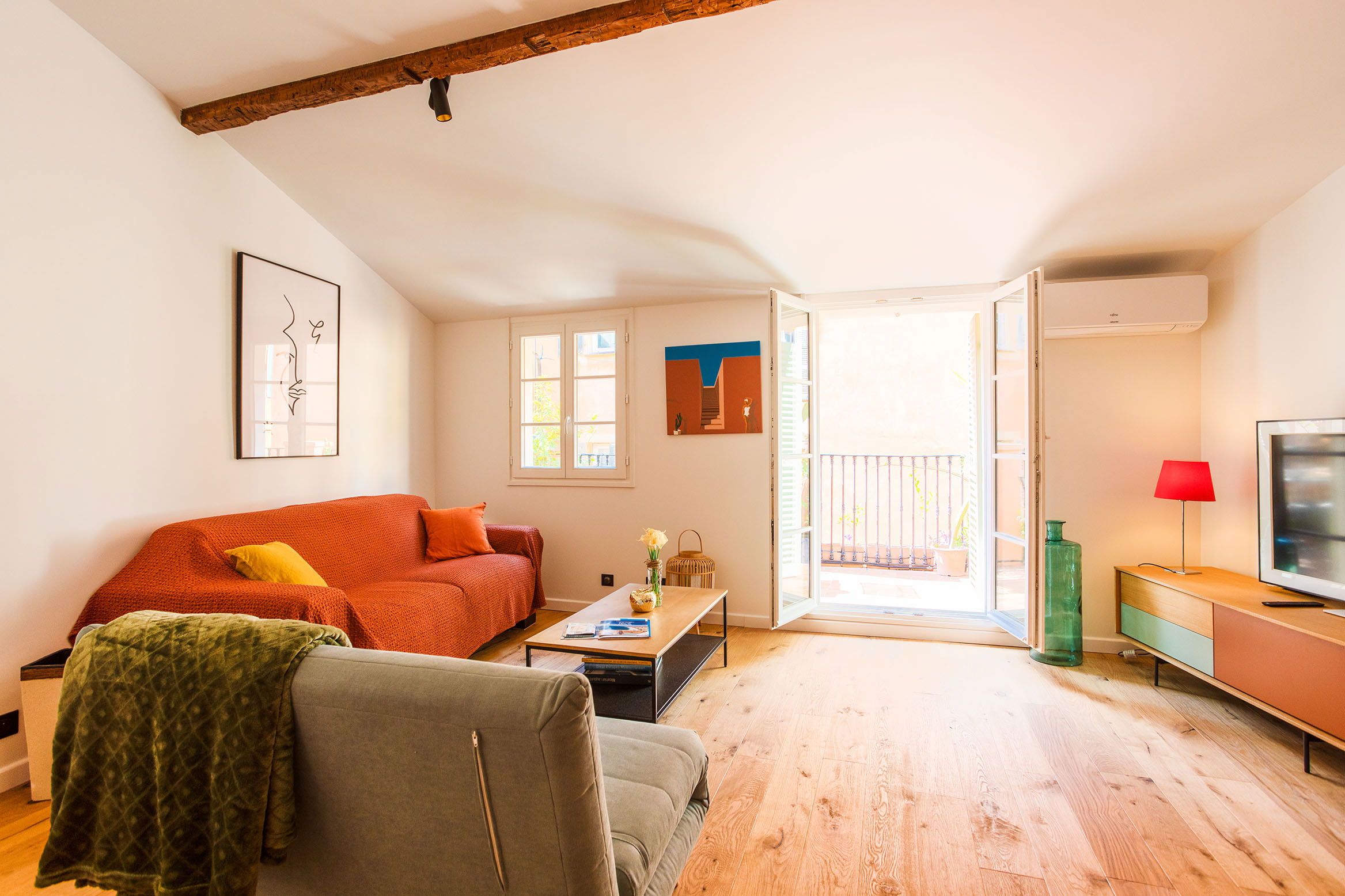Situé à Nice dans le Vieux Nice, appartement de location saisonnière climatisé de 45 m² et récemment rénové, il est meublé et confortablement équipé pour 4 personnes