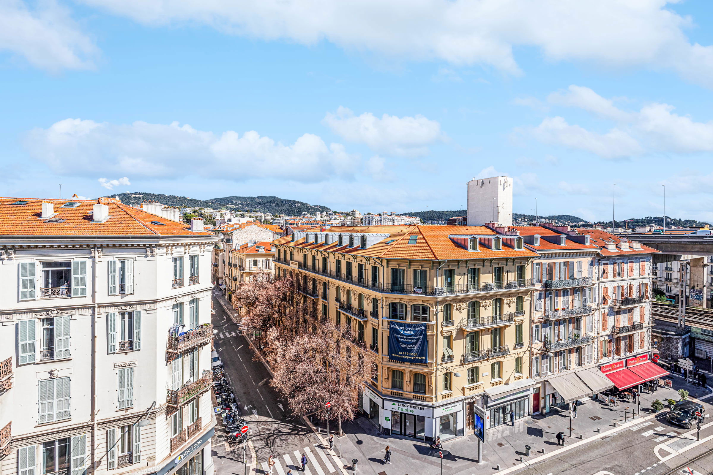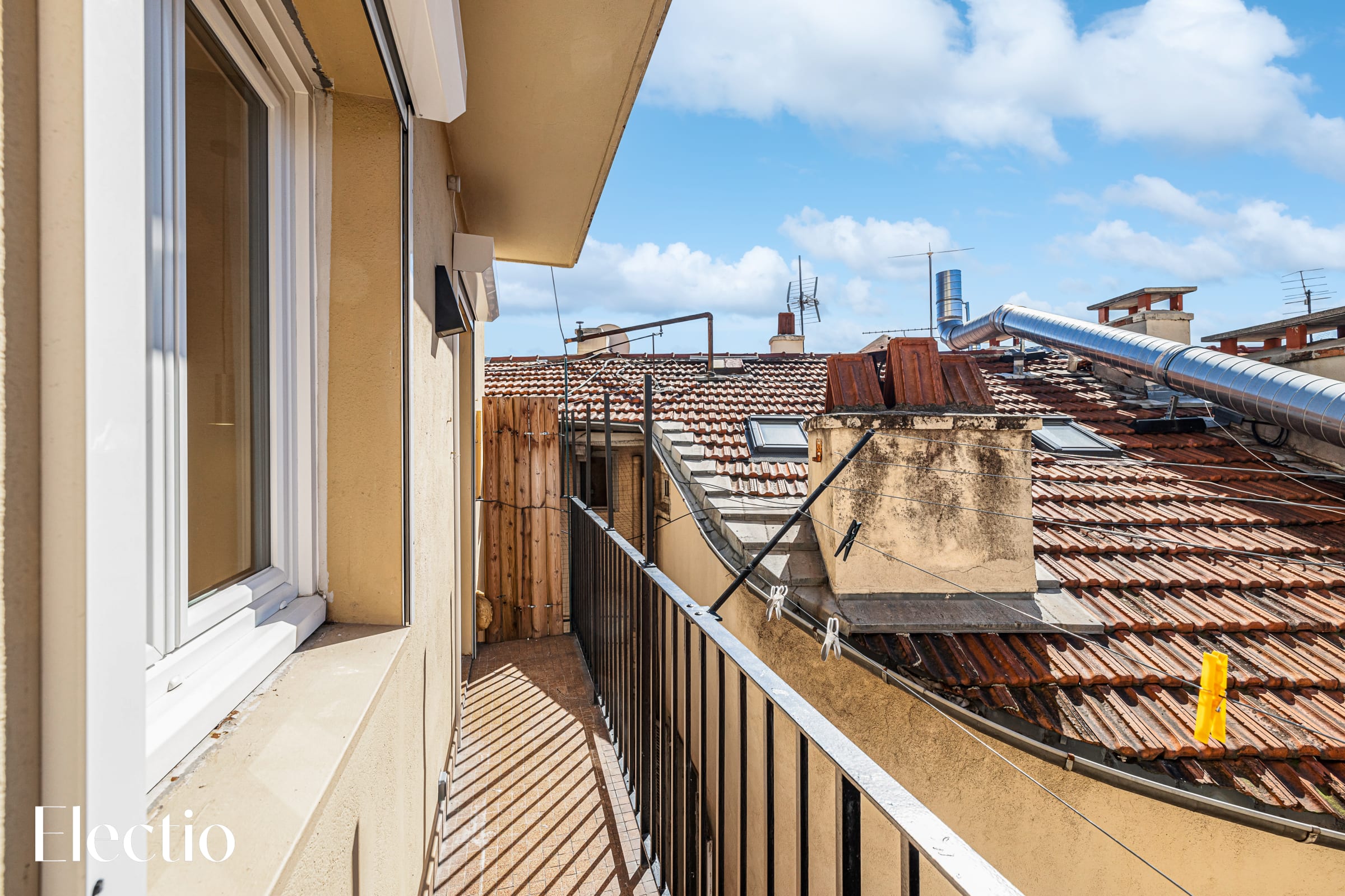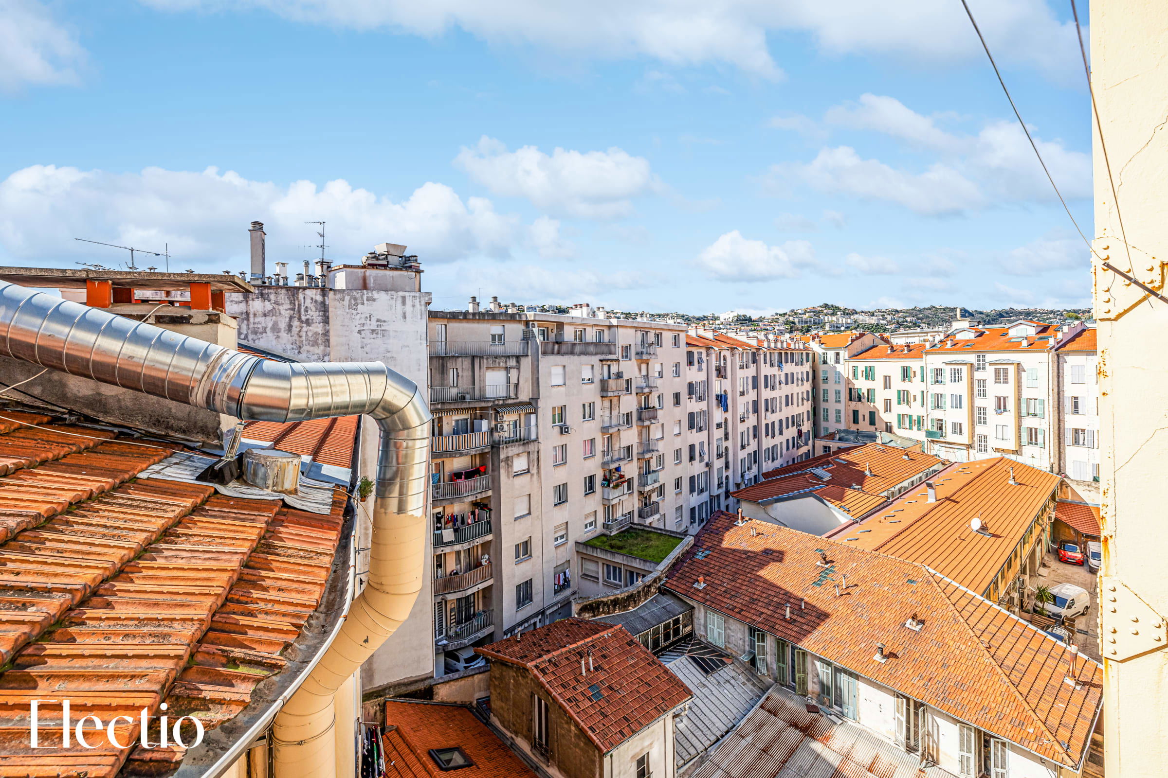 🌿 La terrasse orientée sud-est offre une vue panoramique sur les toits de la ville et les montagnes du Mont Boron et de l’Alban Mont Chauve. Véritable atout en cœur de ville, ce rare espace extérieur, aménagé avec table et chaises, est parfait pour savourer un petit-déjeuner au soleil ou un apéritif en fin de journée.