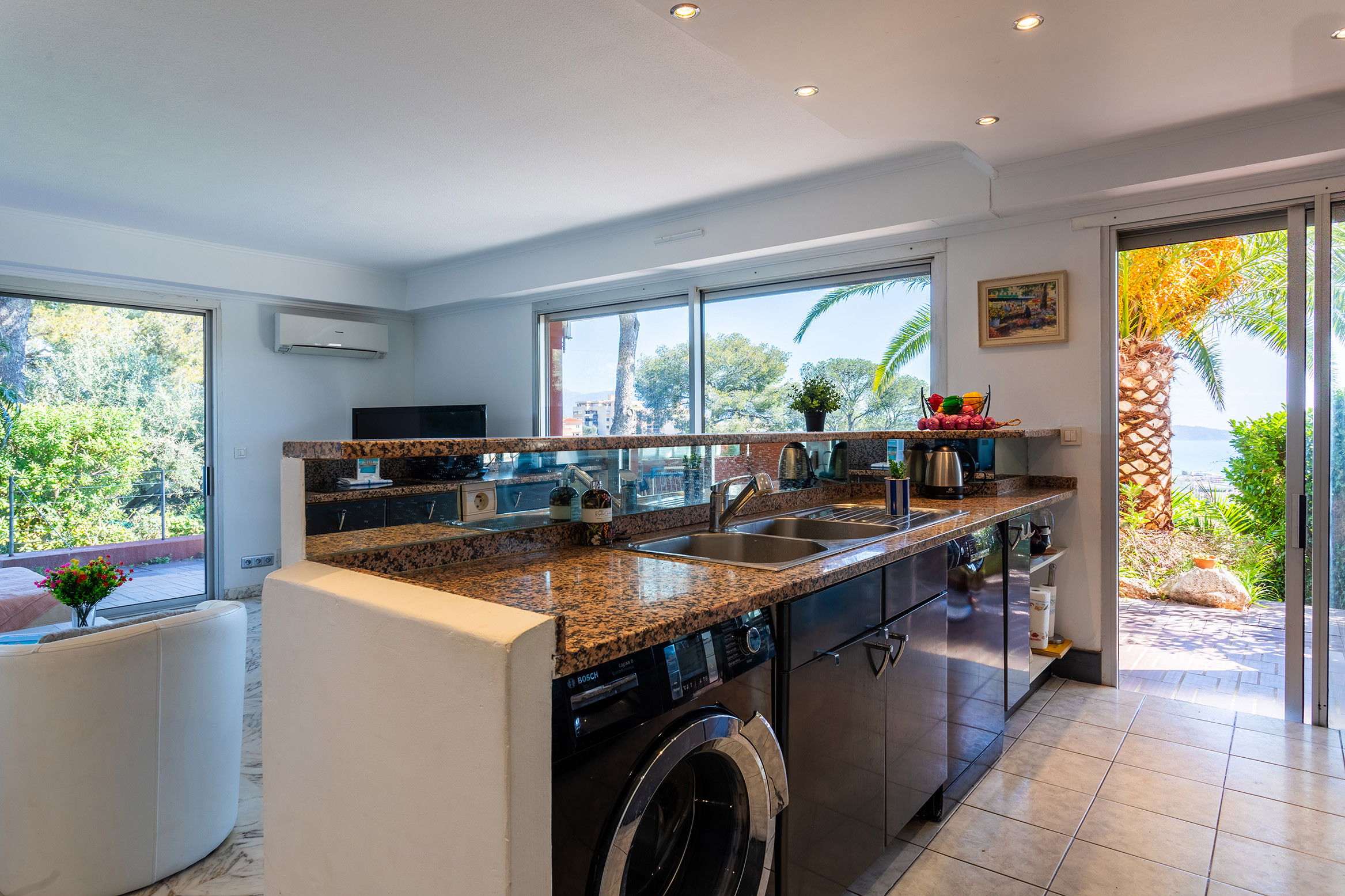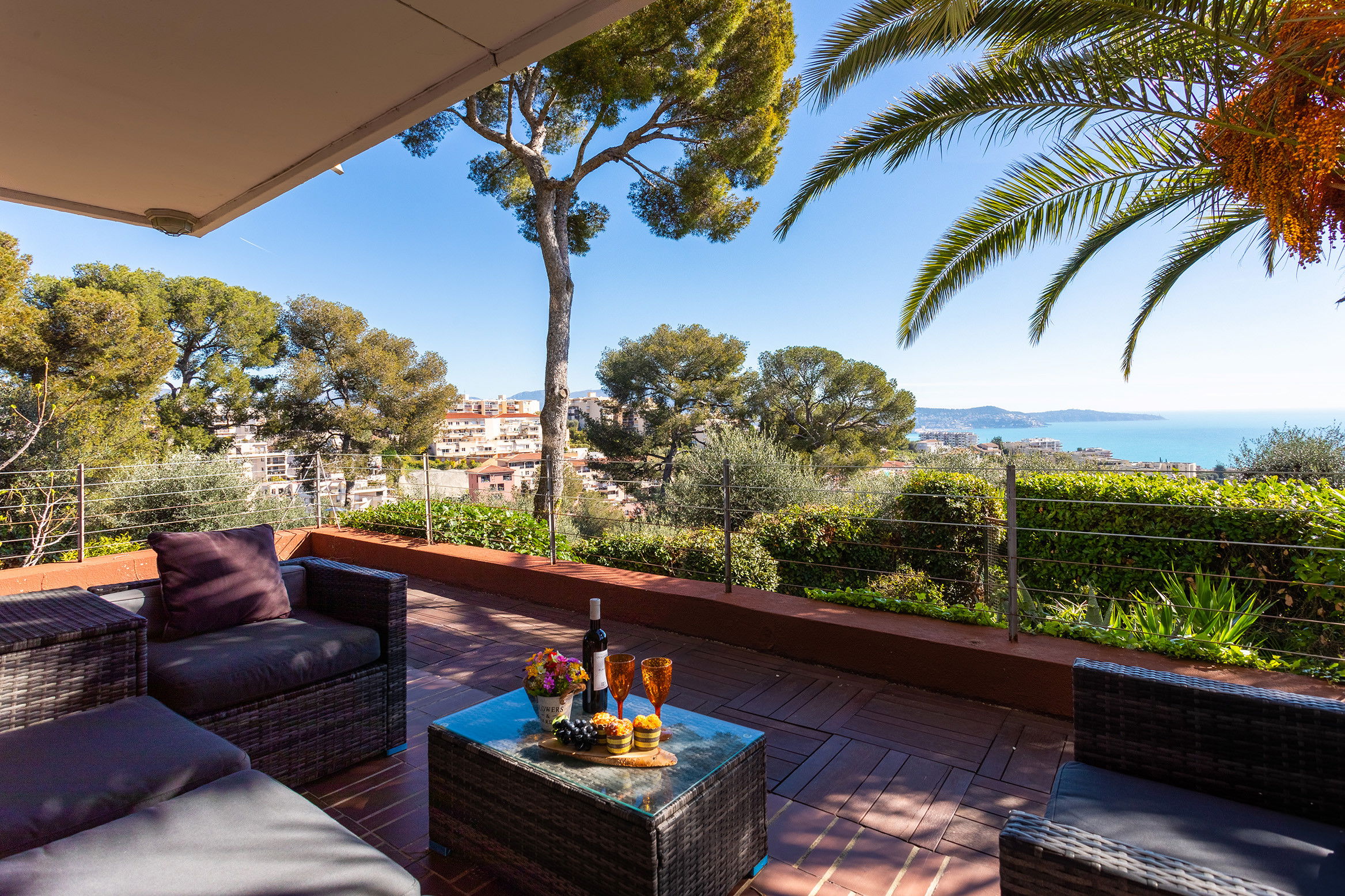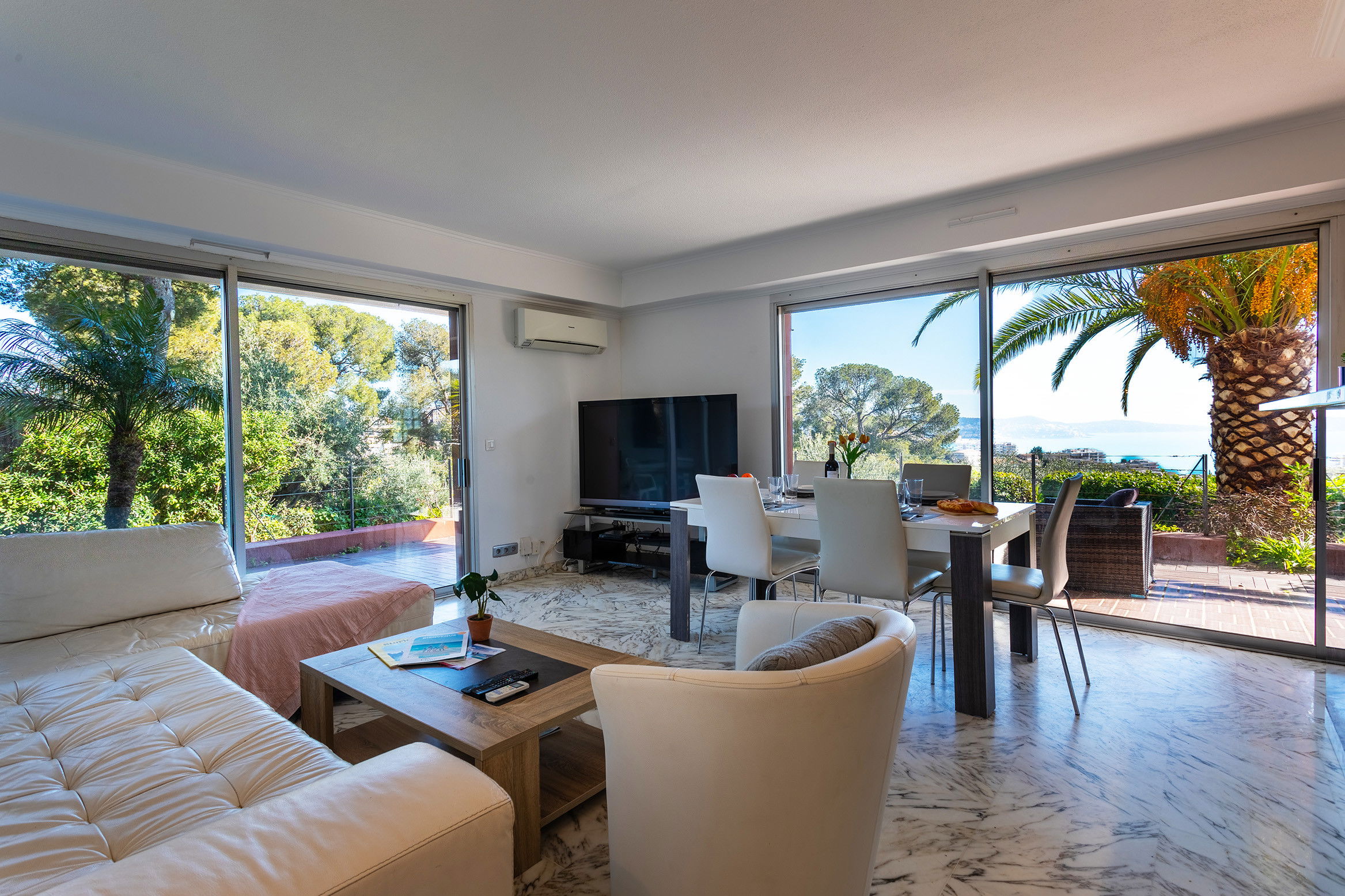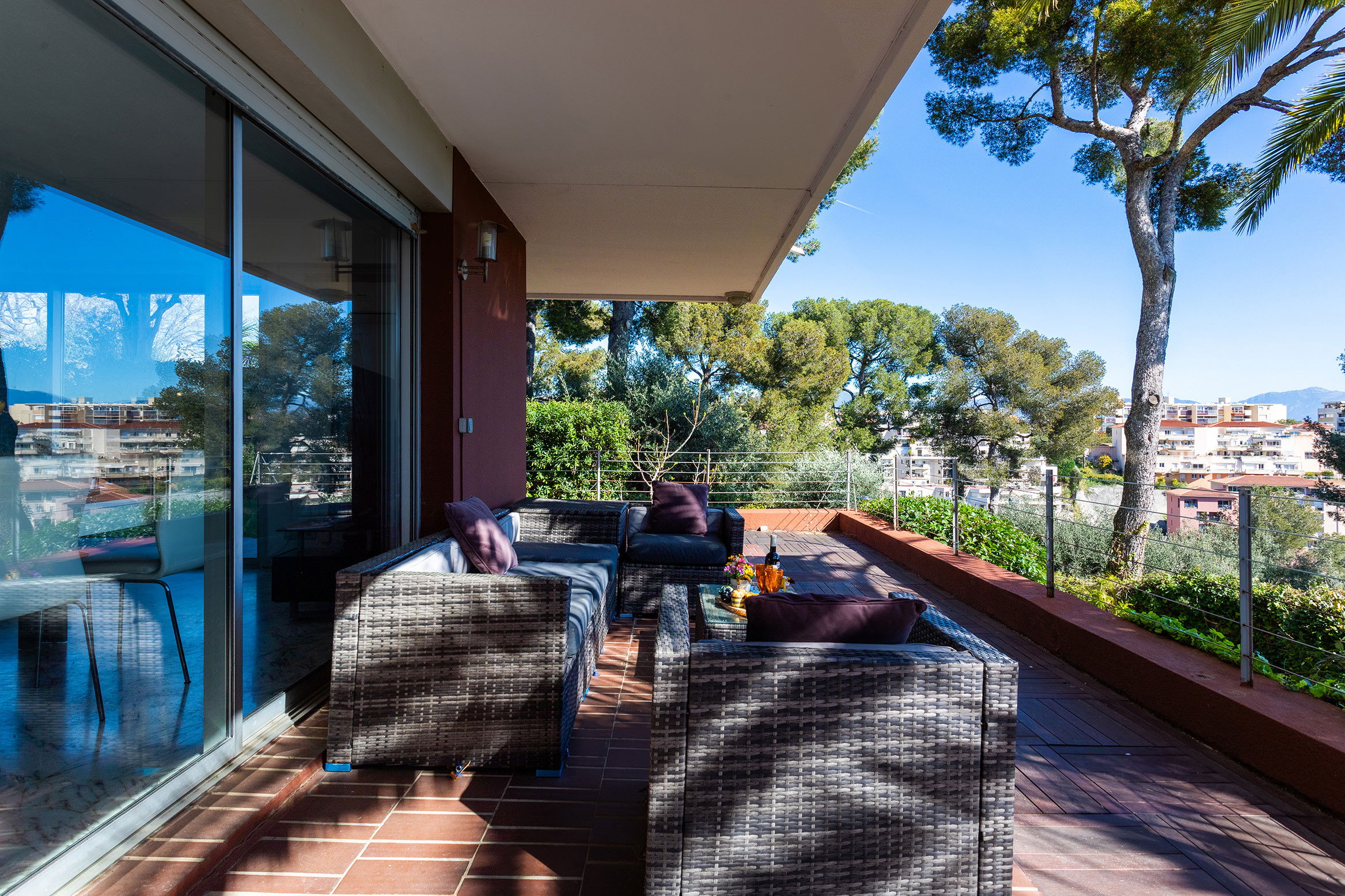 Il se trouve au rez de jardin avec ascenseur, l’appartement bénéficie d’une grande terrasse de 60 m2, idéale pour profiter des longues journées ensoleillées de la Côte d'Azur.