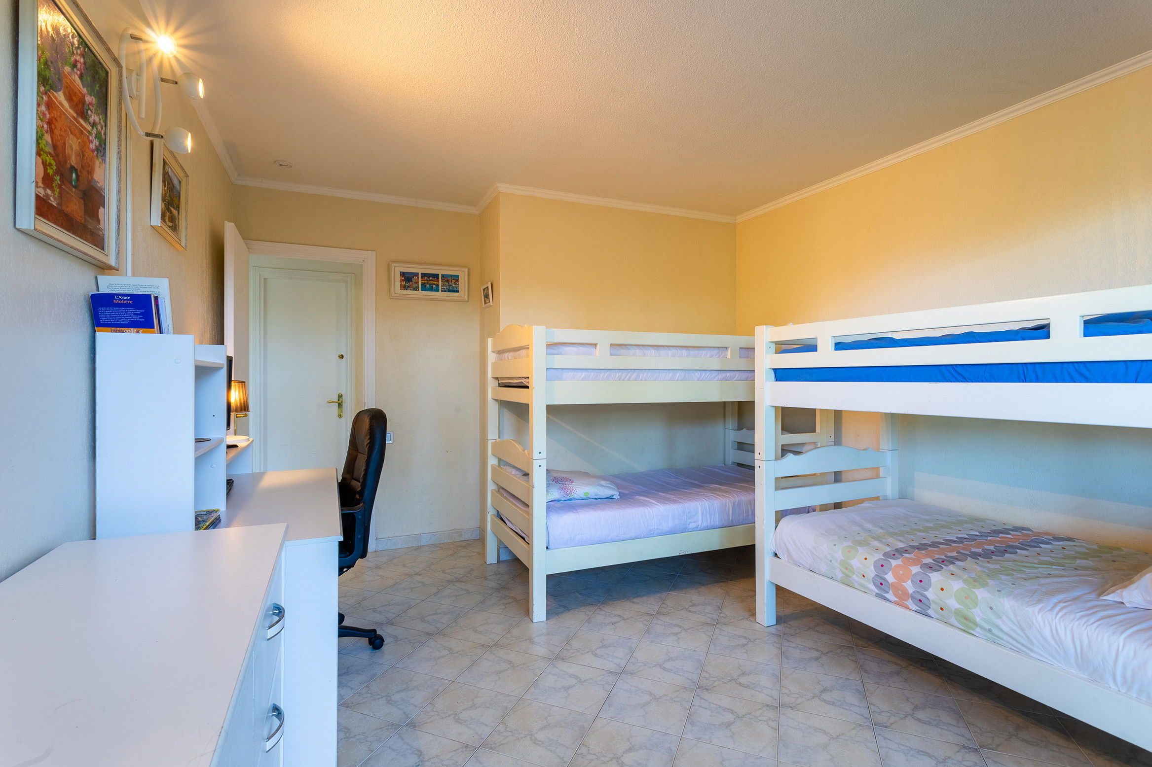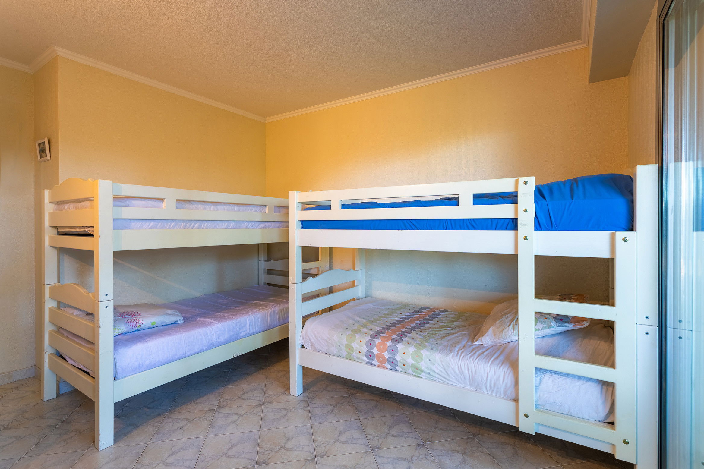 2 chambres : l’une avec 1 lit 160cm et l’autre avec 4 lits 90. , ( 2 lits superposes) 1 salle de douche avec wc indépendant .