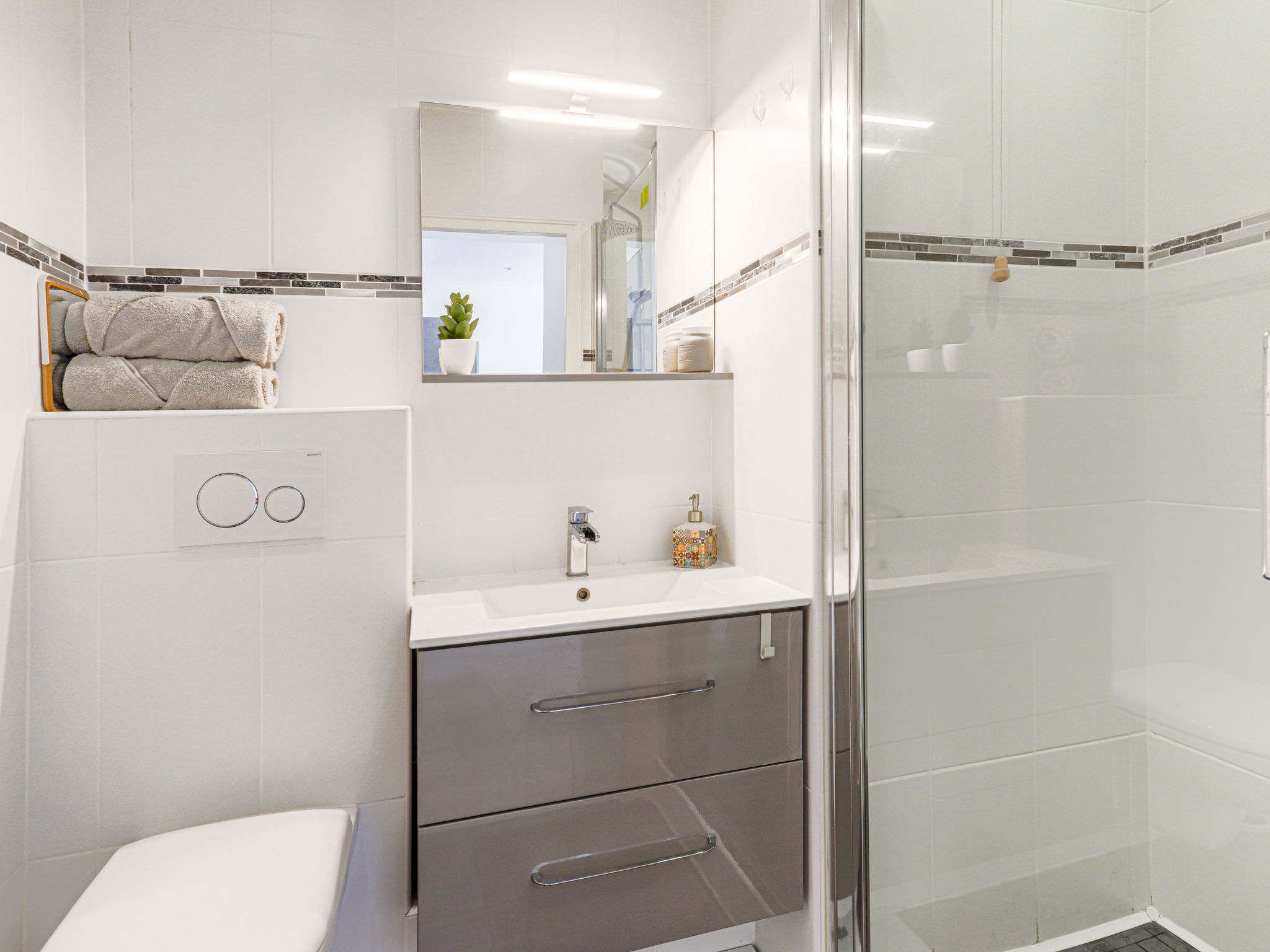 Appartement de 2 pièces 30 m2 au 4ème étage, situation est. Aménagement confortable et agréable: séjour/salle à manger avec 1 divan-lit (120 cm, longueur 190 cm), écran plat et chauffage électrique. 1 chambre avec 1 lit double (160 cm, longueur 200 cm). Cuisine (four, 4 plaques à induction, grille-pain, bouilloire électrique, cafetière électrique). Douche/WC. Chauffage électrique. Vue sur les montagnes et la localité. A disposition: lave-linge, fer à repasser. Internet (Connexion WIFI, gratuit). Veuillez noter: 1 animal/ chien de petite taille autorisé. Détecteur de fumée. Annonce d'un particulier (art 155, IV du CGI). 06088034993WF