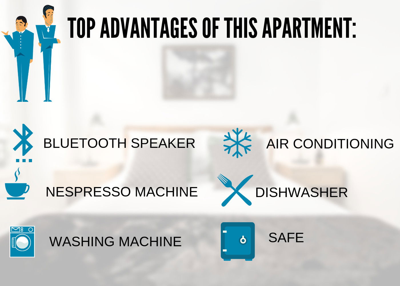 L’appartement dispose d’un accès par ascenseur. Il bénéficie d’une connexion Wifi gratuite et est entièrement climatisé. Les fenêtres sont en double-vitrage.