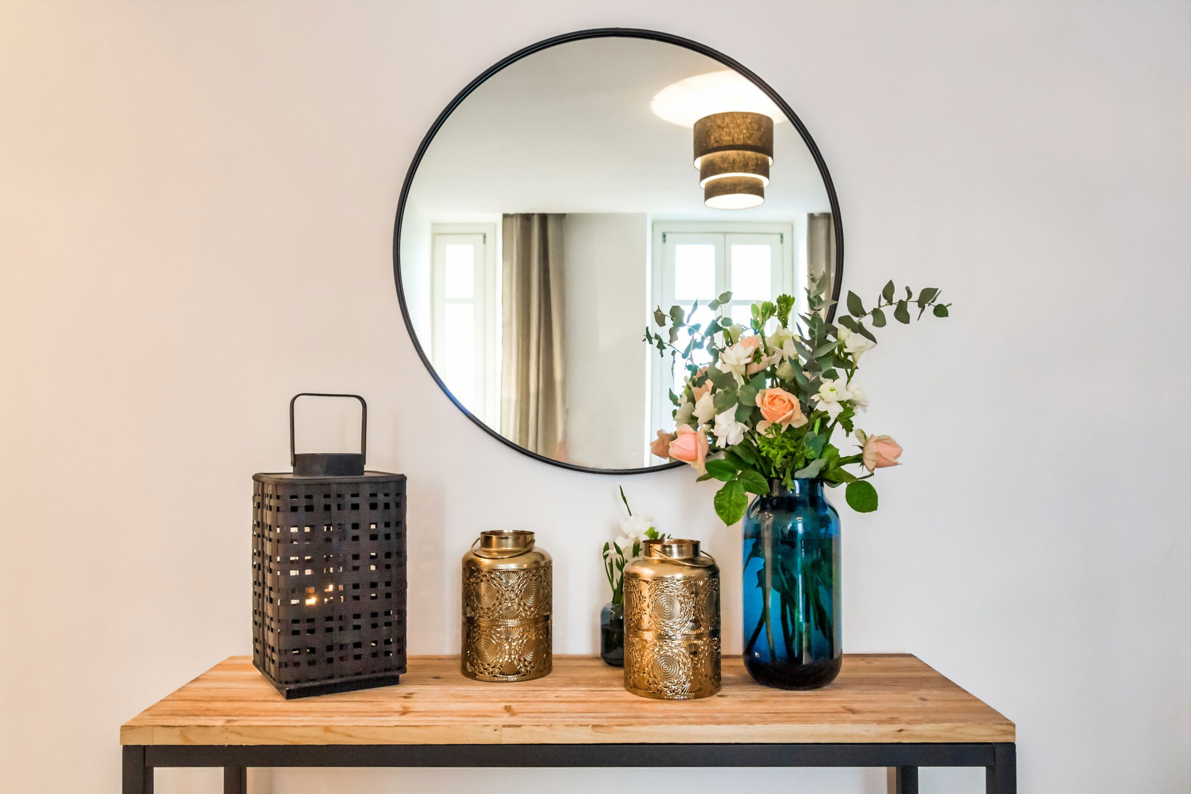 L’appartement a une décoration moderne. Les meubles en matière naturelle comme le bois et le rotin se mêlent au métal noir industriel. Les éléments dorés dans Les objets décoratifs apportent une note d’éclat et de prestige.