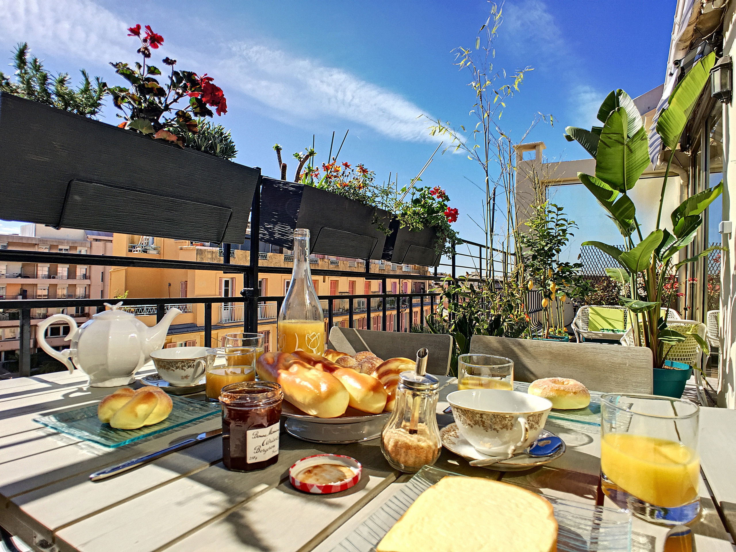 Un bel appartement en duplex de 2 chambres en dernier étage. Son emplacement en hyper centre à 2 pas de la Place Massena le rend exceptionnel. Vous serez au cœur de la vie citadine Niçoise. Vous profiterez de la belle terrasse fleurie et ensoleillée pour prendre vos repas ou lire un magazine.