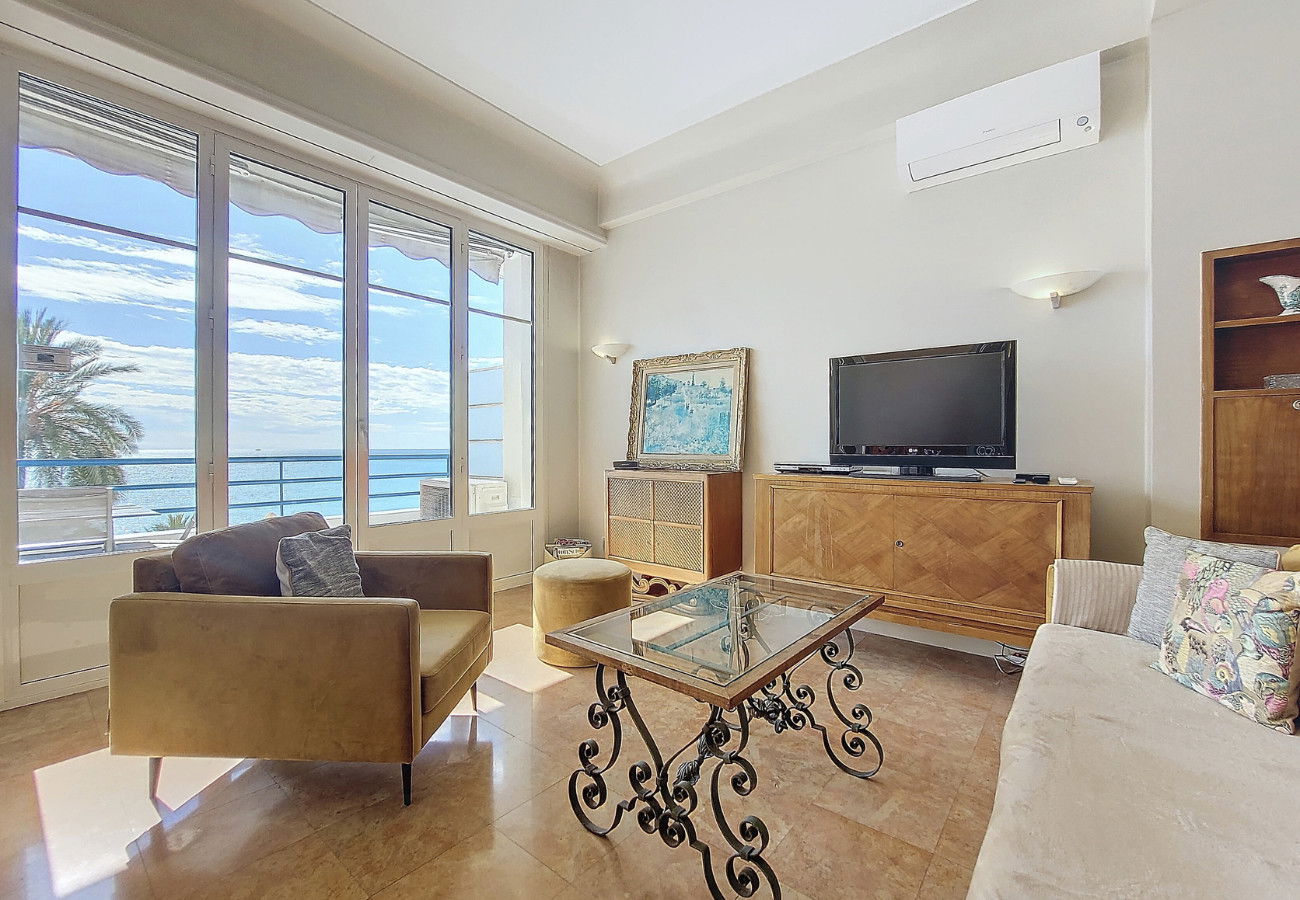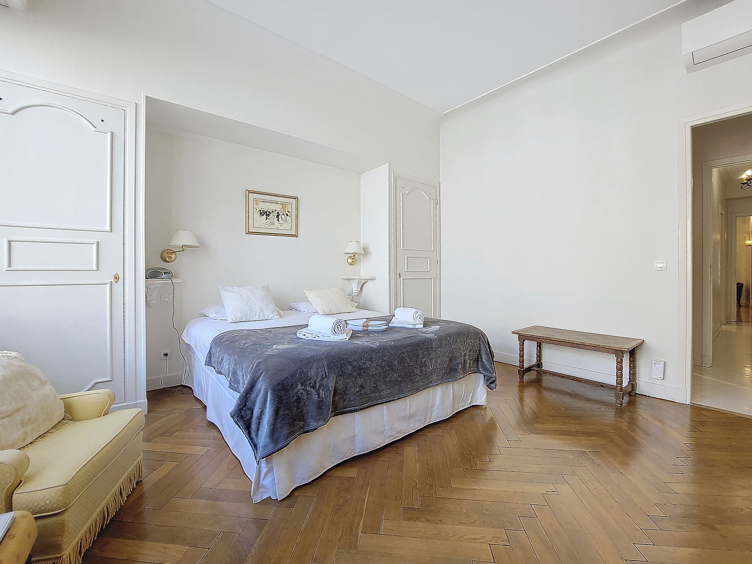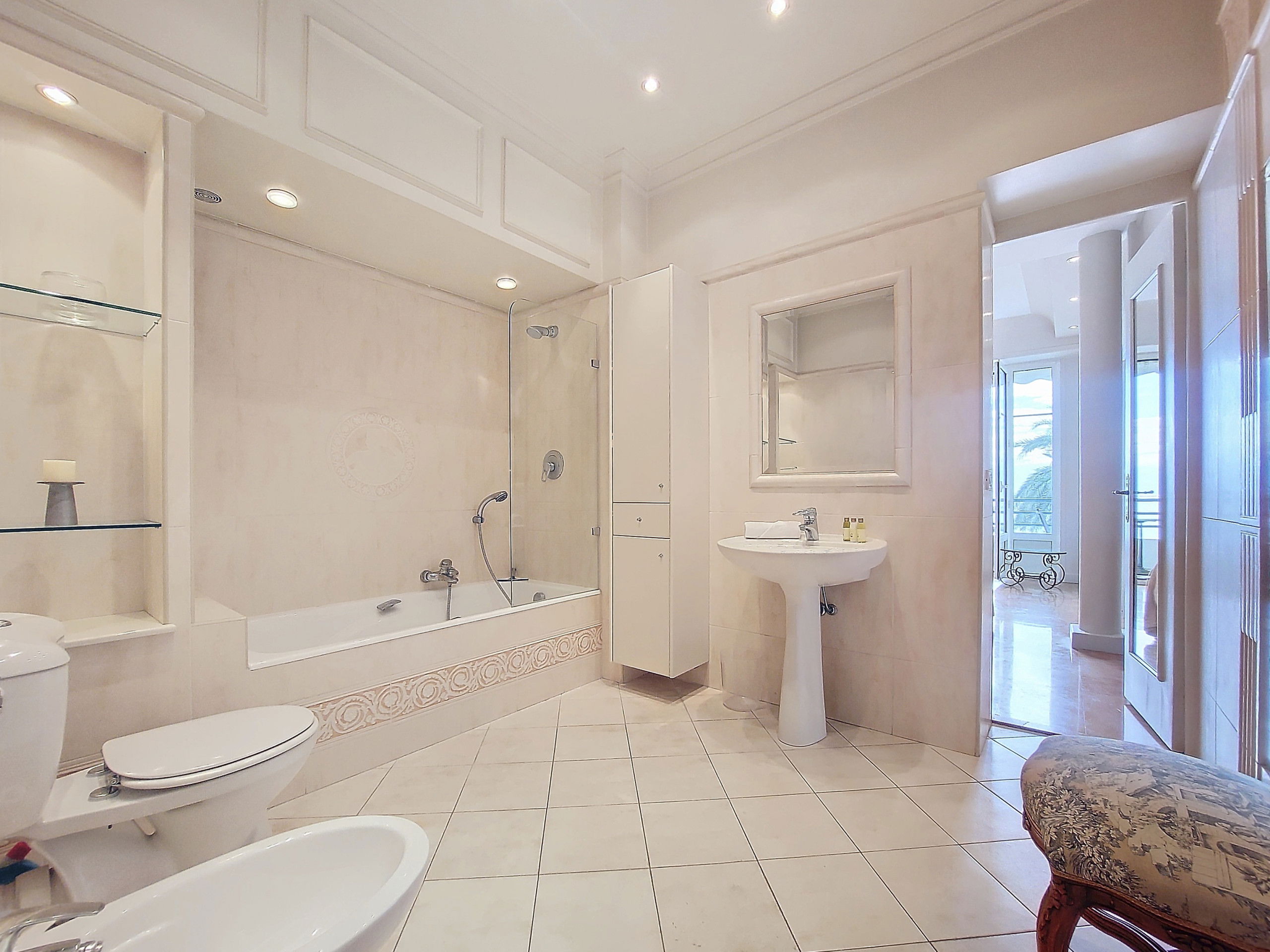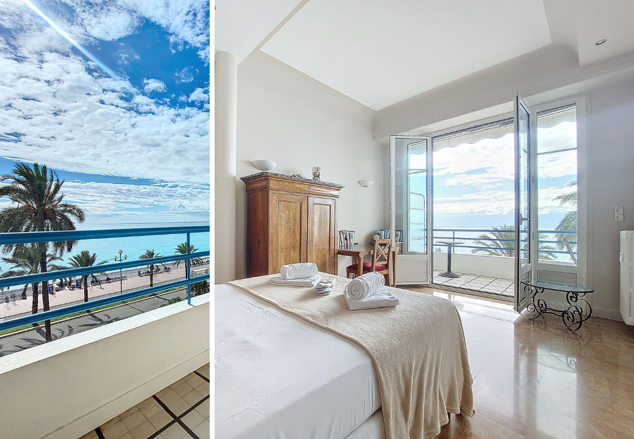 Bel appartement climatisé de deux chambres et deux salles de bain. Il a une localisation rêvée sur la Promenade des Anglais au niveau du centre-ville. Il bénéficie d’une grande terrasse avec une vue magique sur la mer.