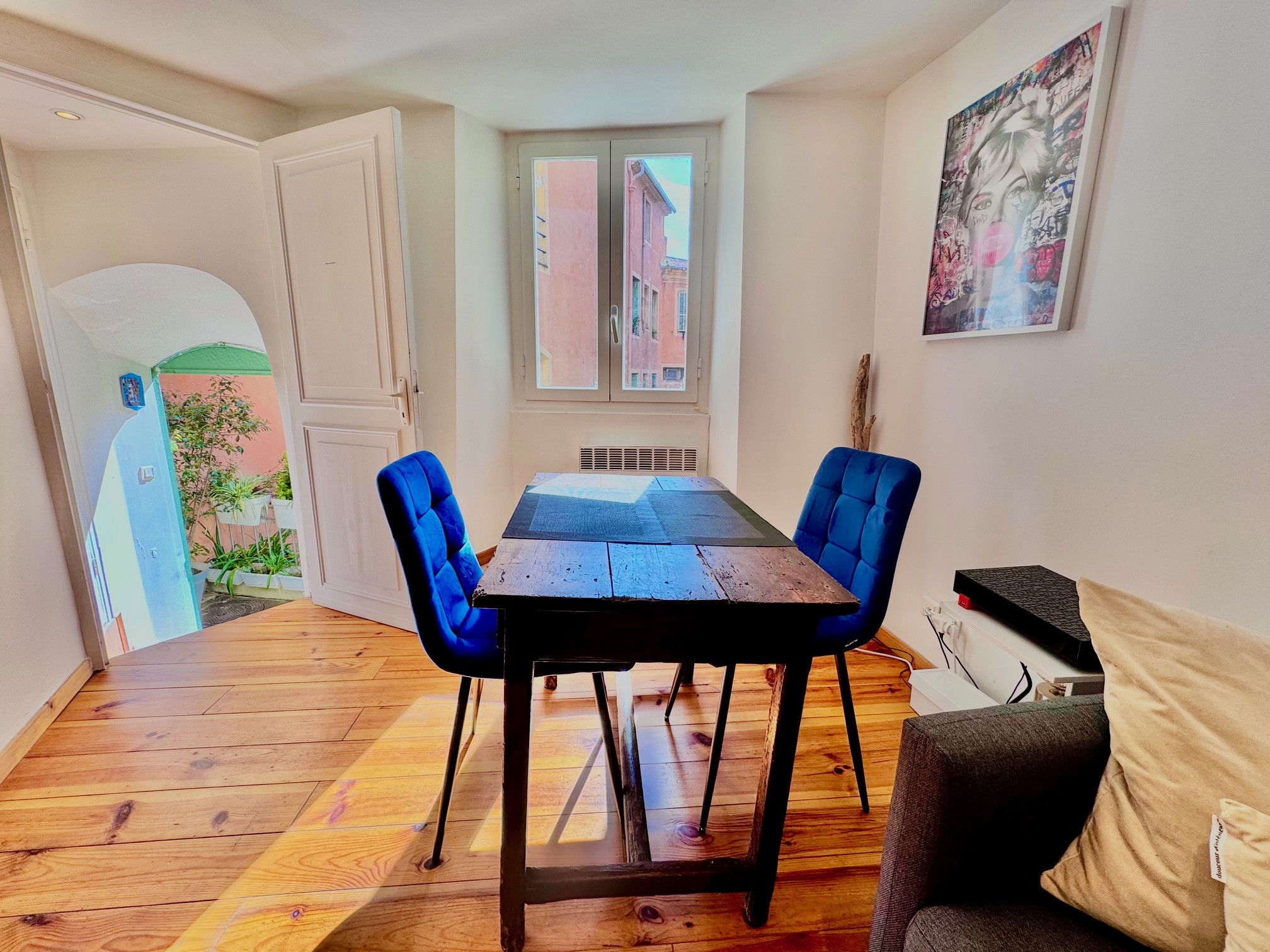 Situé dans une charmante ruelle du Vieux-Nice, ce studio de 28 m², lumineux et bien agencé, vous accueille dans une atmosphère chaleureuse et confortable, à quelques pas seulement de la mer, des restaurants typiques et de l’effervescence du Cours Saleya. Il est parfait pour un séjour à deux, en immersion dans l’un des quartiers les plus emblématiques de la ville.