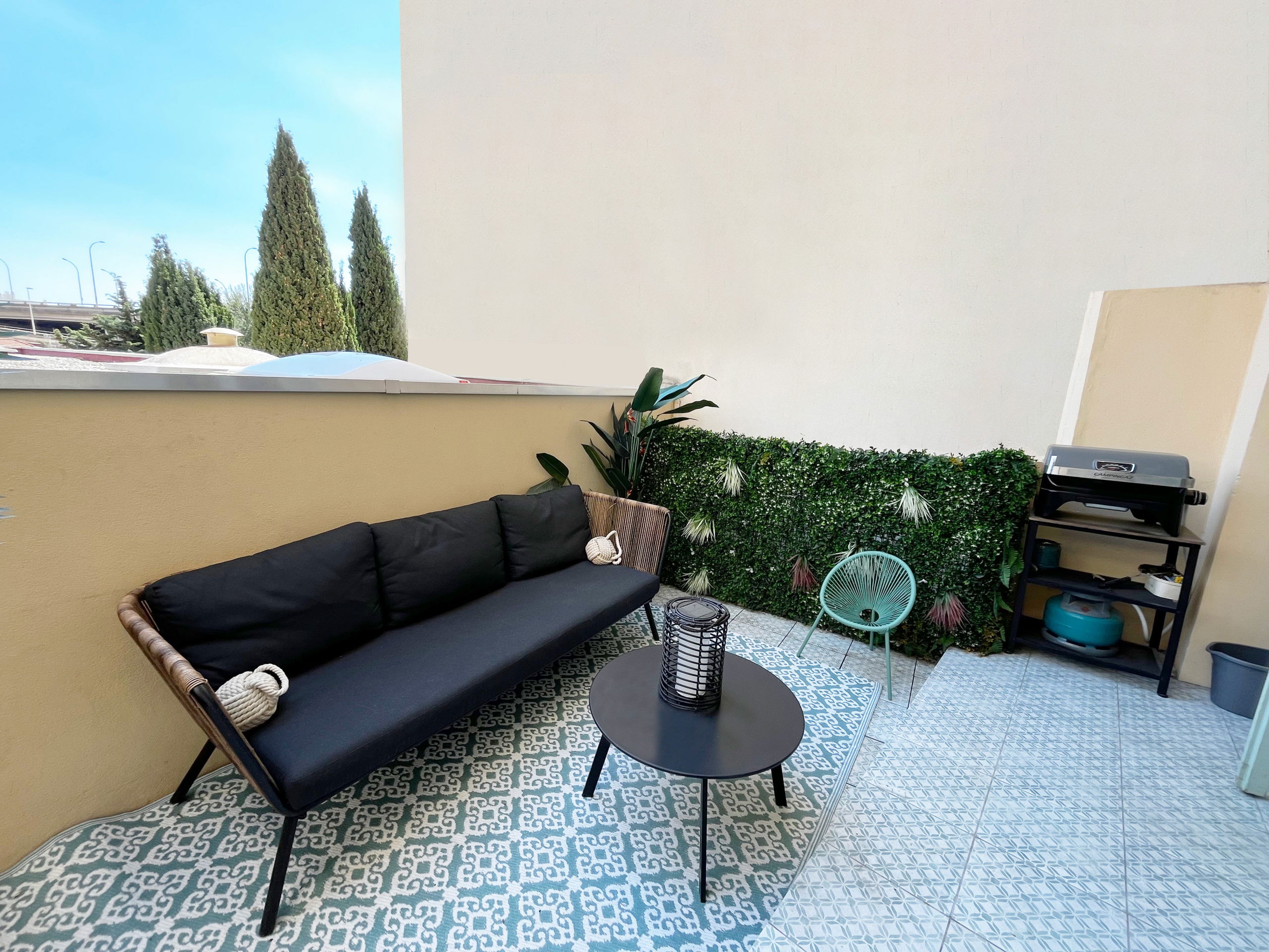 La terrasse de 12 m² accessible depuis le salon est un véritable atout de cet appartement. Elle offre un espace extérieur agréable, parfait pour profiter des belles journées ensoleillées, prendre un café le matin ou un verre en soirée, tout en profitant de l’air frais.