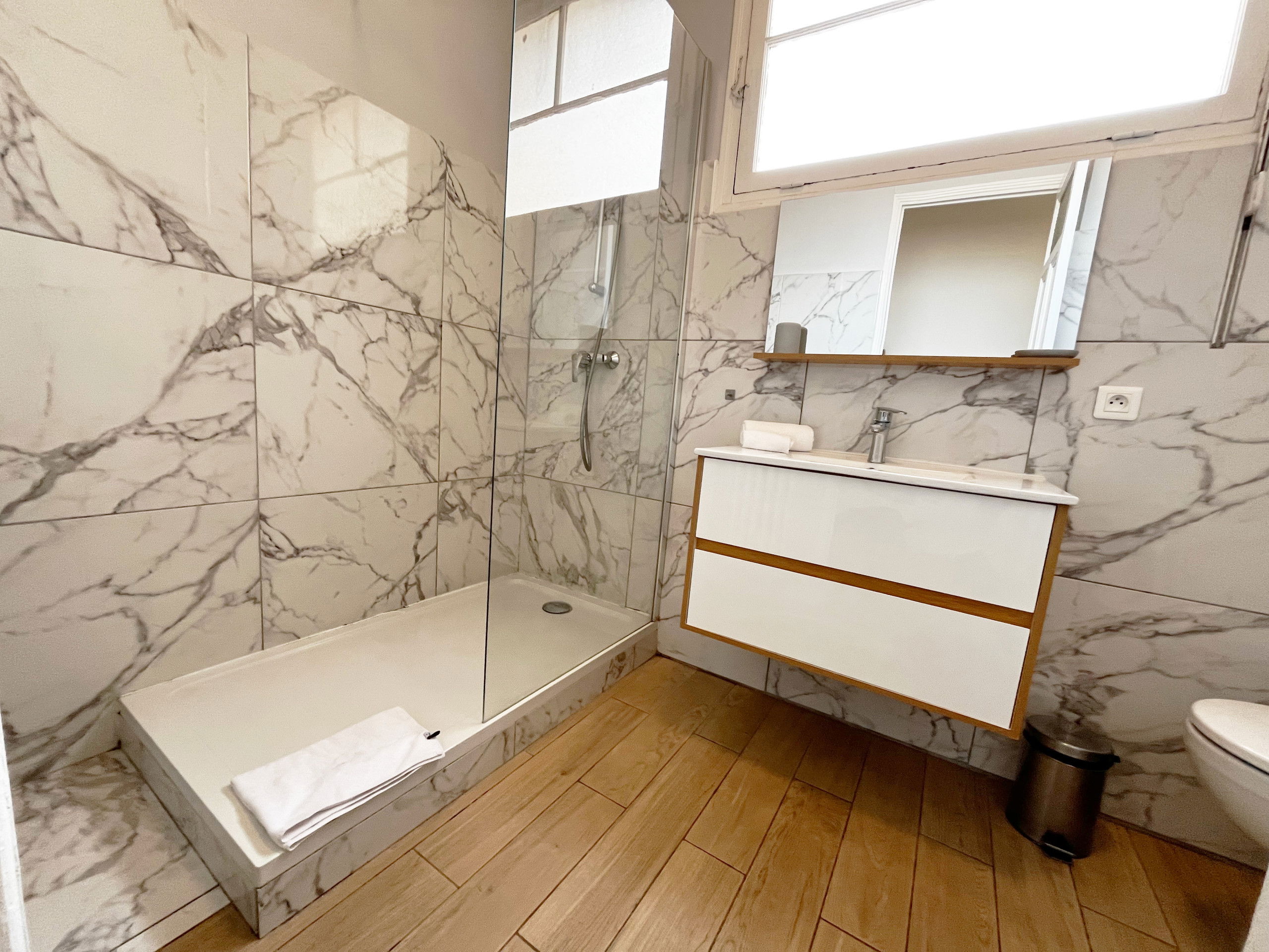 La salle de bain est fonctionnelle et bien équipée pour votre confort. Vous y trouverez tout le nécessaire pour votre hygiène, avec un agencement pratique et soigné.