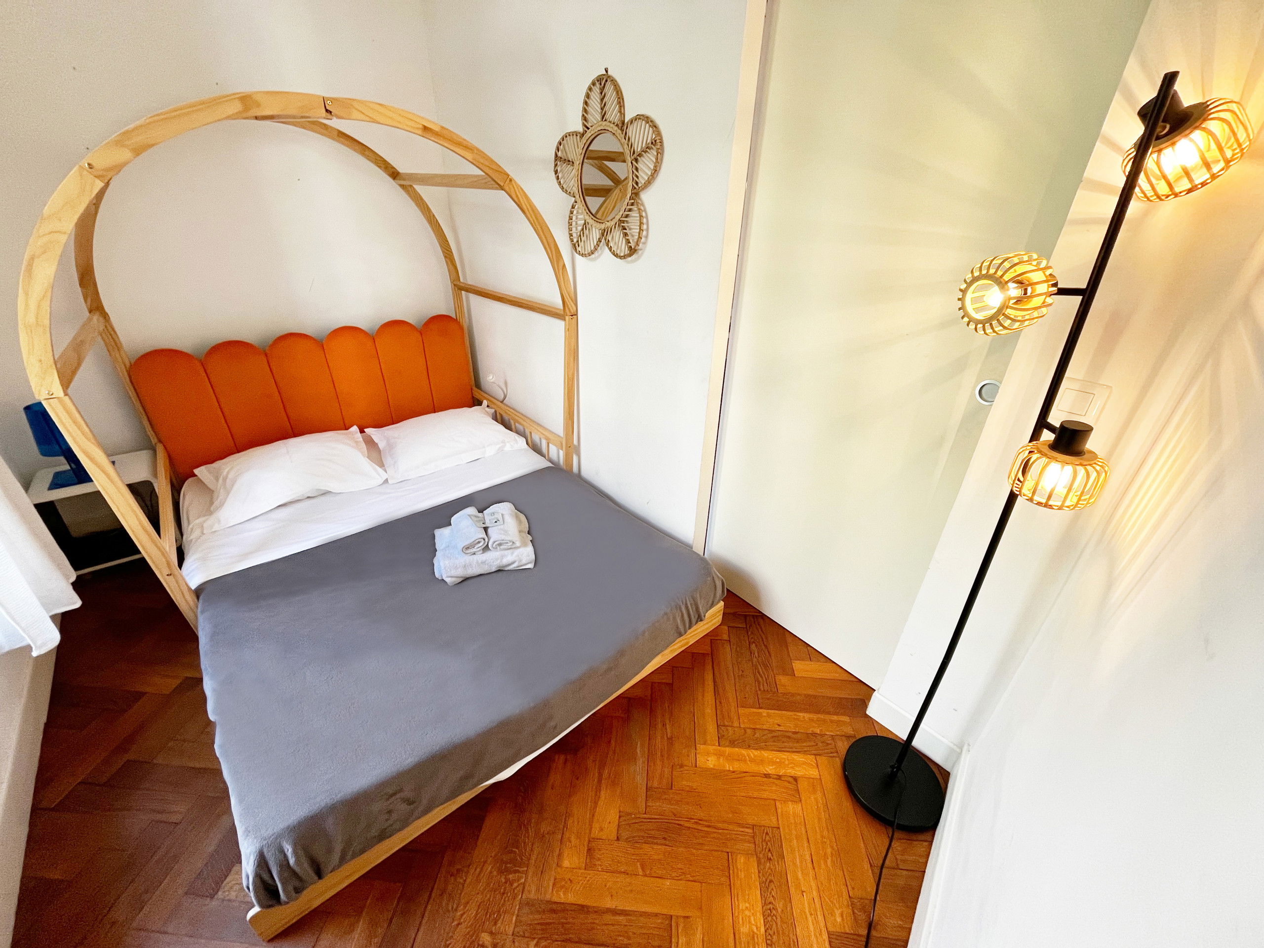 L’appartement comprend deux chambres calmes, chacune dotée d’un lit double confortable. Ces espaces de nuit sont pensés pour offrir intimité et tranquillité, garantissant un bon repos pour tous les occupants.