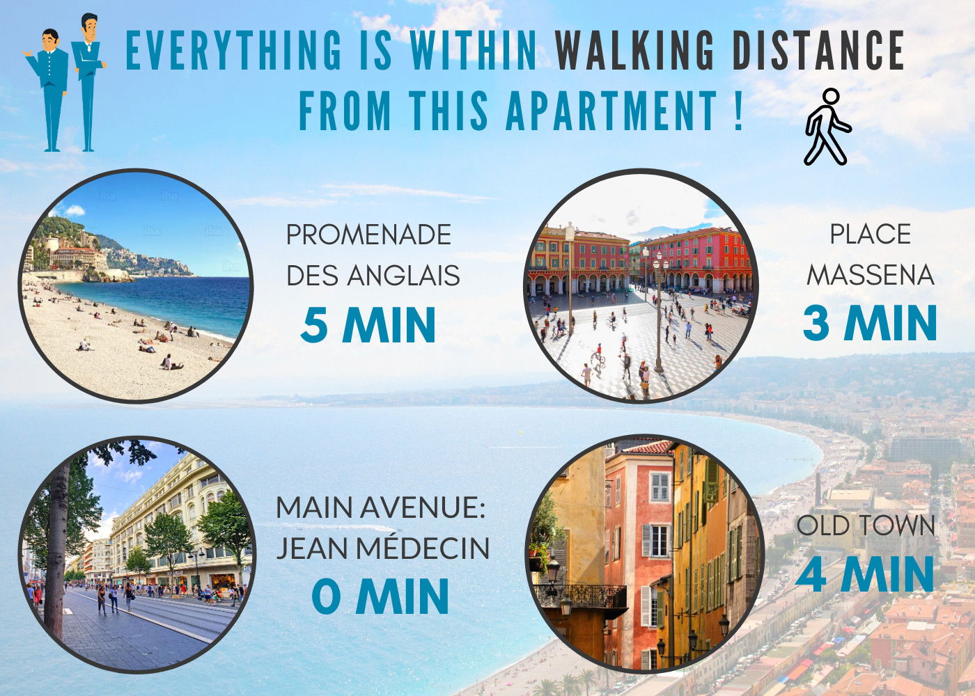 L’arrêt de tramway Jean Médecin en bas de votre immeuble vous permettra de vous déplacer facilement dans la ville.
