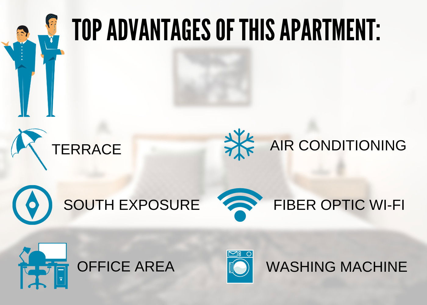 L’appartement se trouve au 4ème étage avec ascenseur dans un bel immeuble entièrement rénové. Il dispose d’une connexion WIFI gratuite (fibre optique) ainsi que de la climatisation.