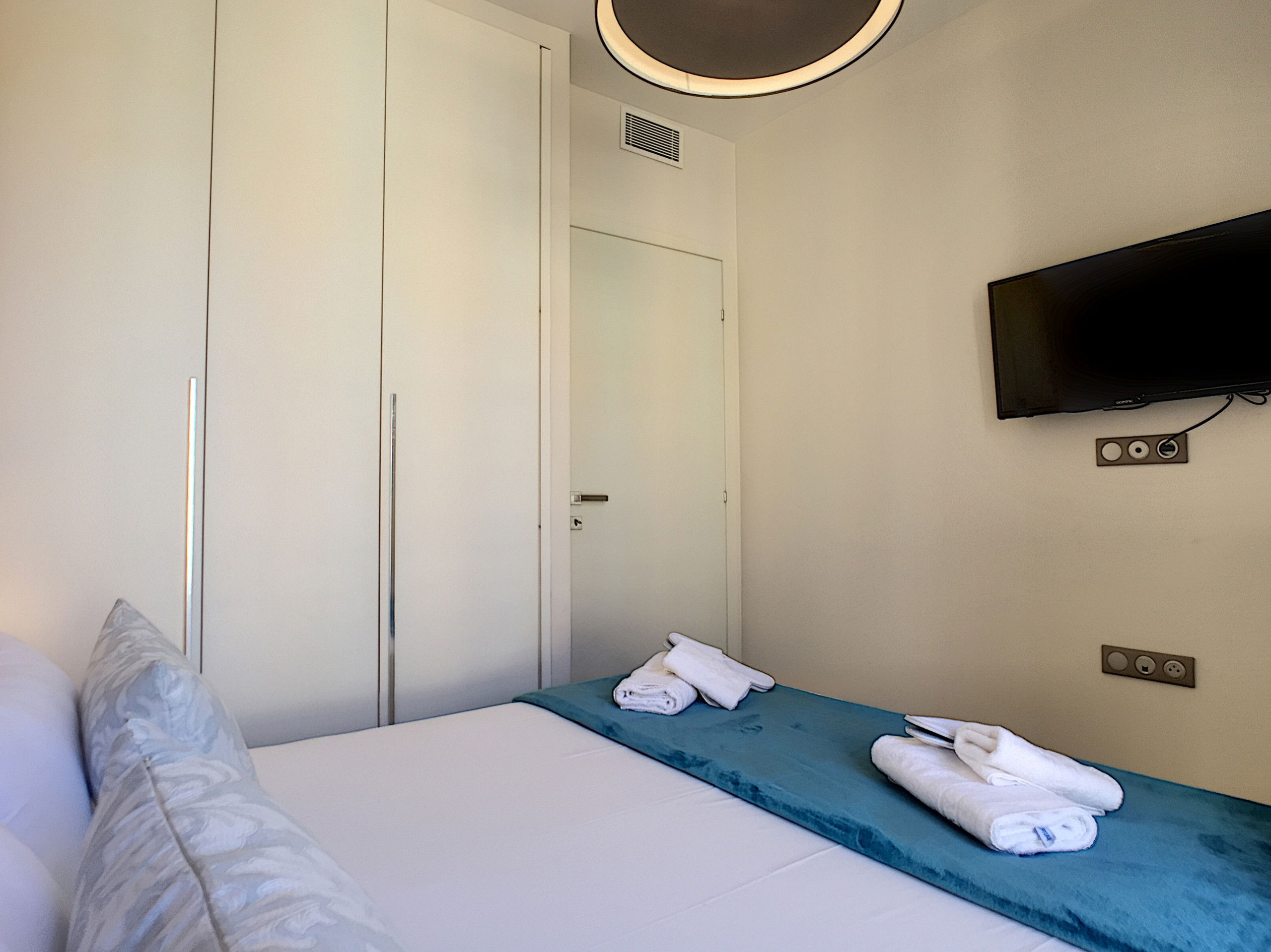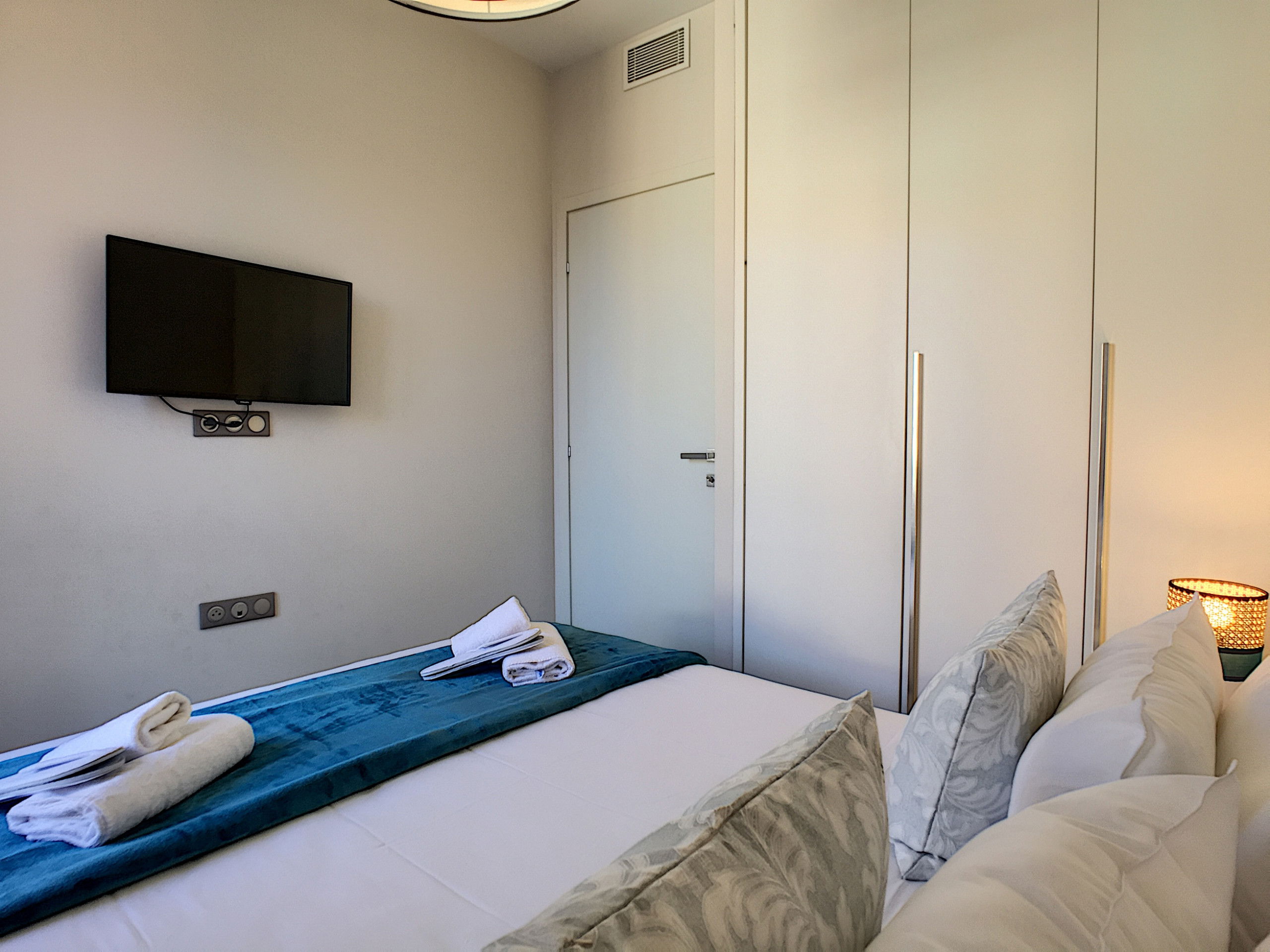 La chambre dispose d’un lit double QUEEN SIZE avec un matelas épais et confortable de 30cm . Il y a également une armoire, un coffre-fort, une TV et 2 tables de chevet.