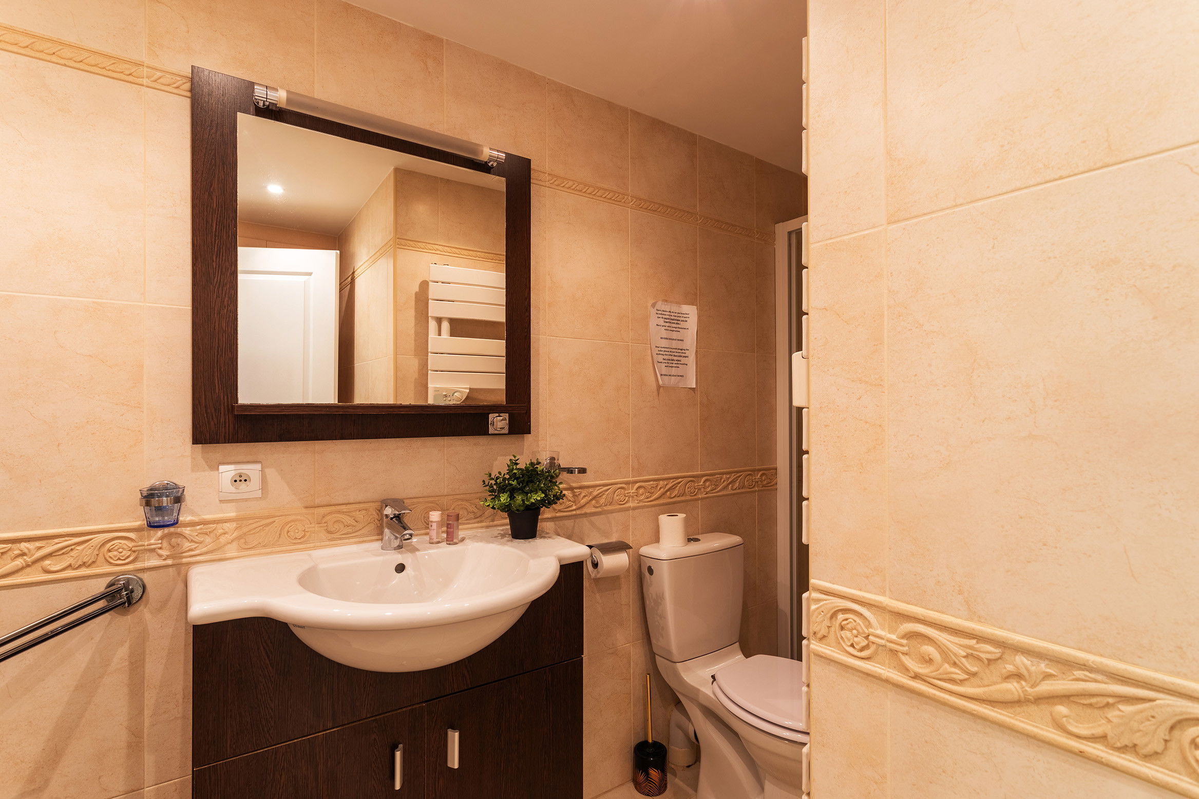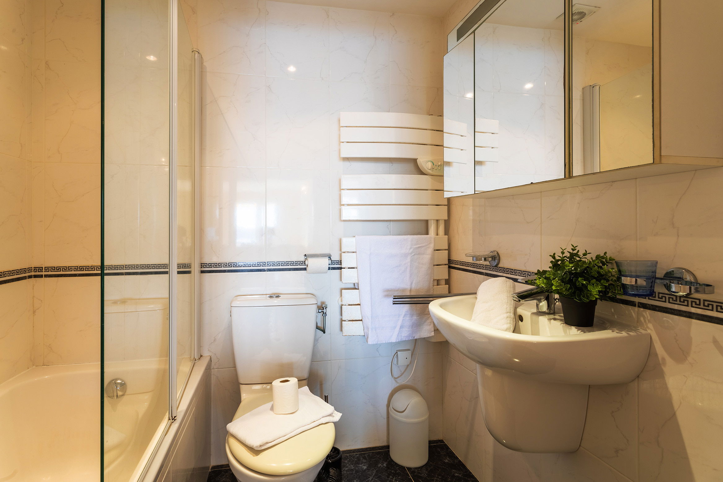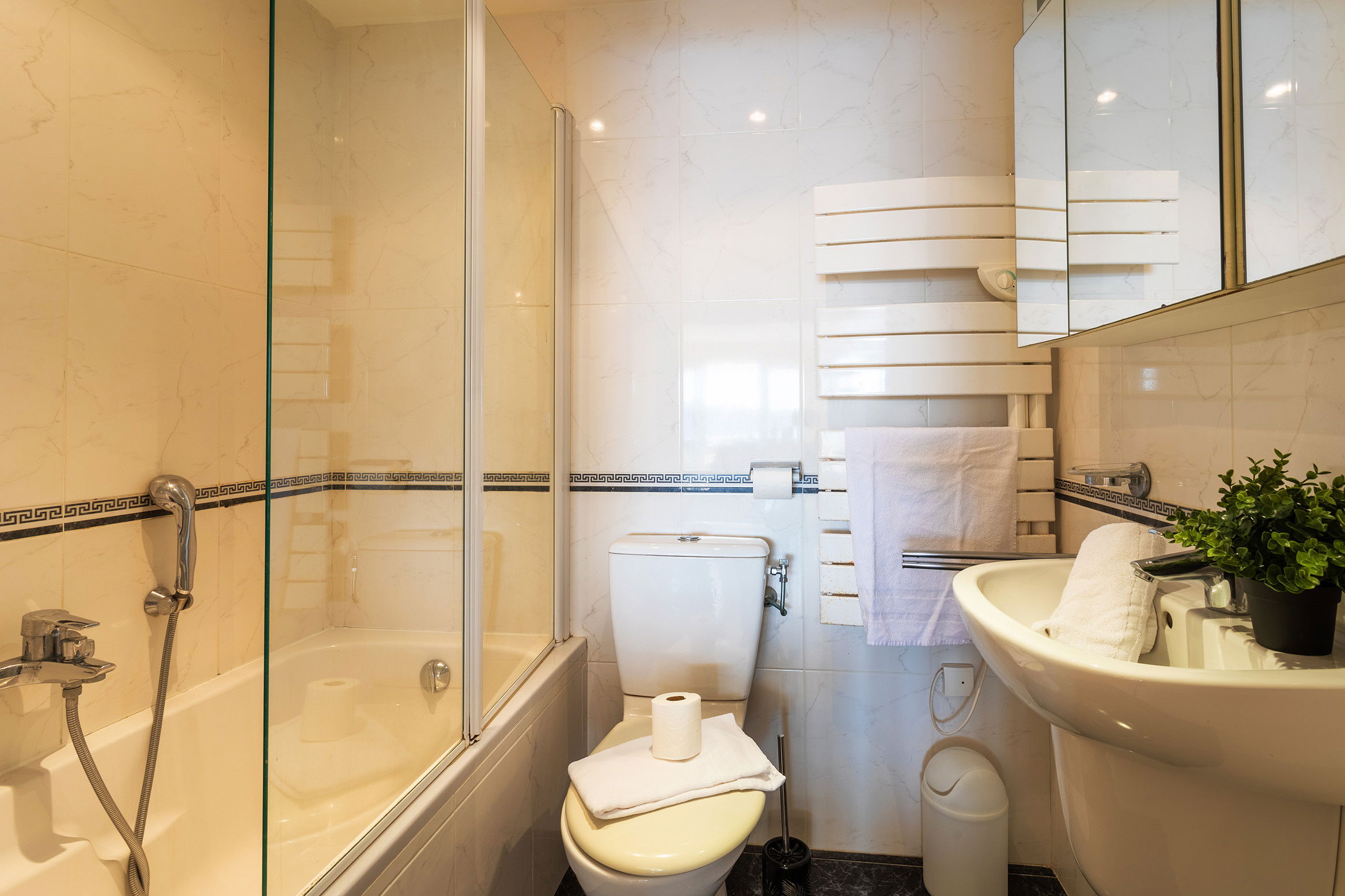 Cet appartement se compose d'une cuisine américaine entièrement équipée ouvrant sur le salon avec coin repas, de 2 chambres, 1 chambre avec 1 lit Queen size (160 cm) et l'autre avec 2 lits simples ainsi que de deux salles de bain, l'une avec douche et WC et l'autre avec baignoire et WC ( lave-linge et sèche-linge dans la salle de bain).