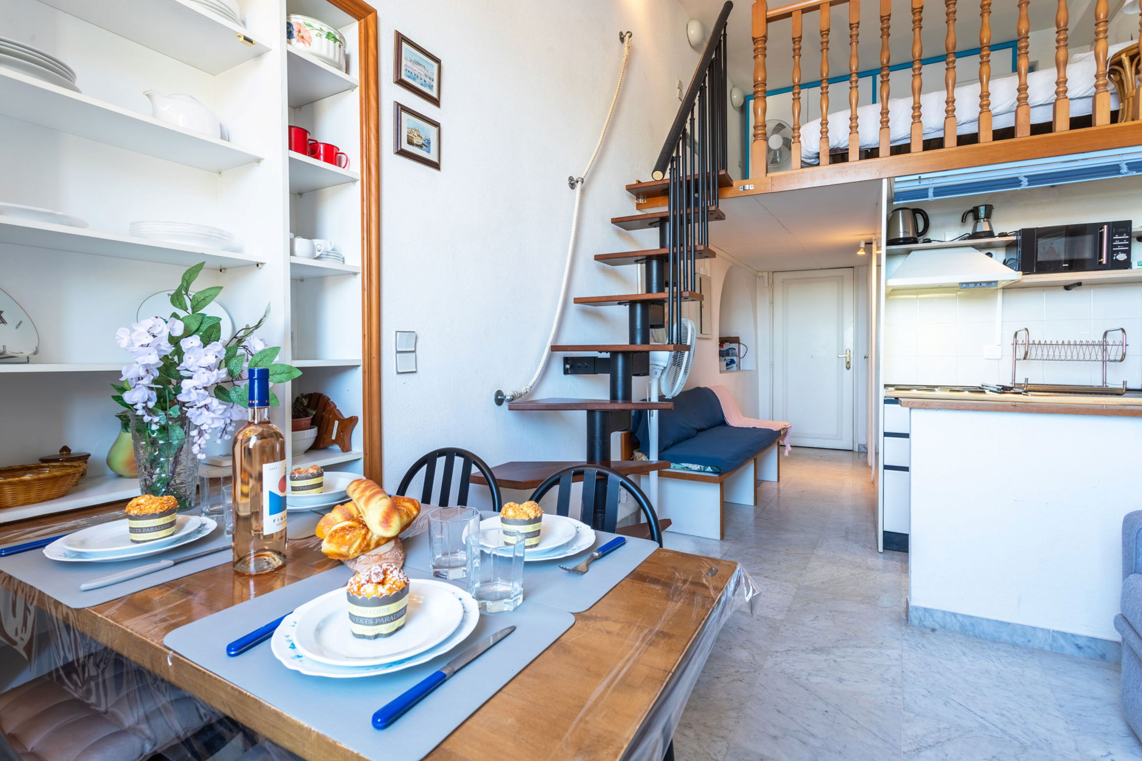MARINE AP4445 Par est situé à Villefranche-sur-Mer, dans une ancienne résidence noble appelée Le Palais de la Marine, directement sur le front de mer et dans la vieille ville, avec tous les restaurants et commodités à proximité. Ce charmant studio duplex offre une superbe vue sur la mer, 4 espaces de couchage et des ventilateurs dans chaque zone. La résidence dispose également d'une grande terrasse commune avec des tables de repas et un salon extérieur.