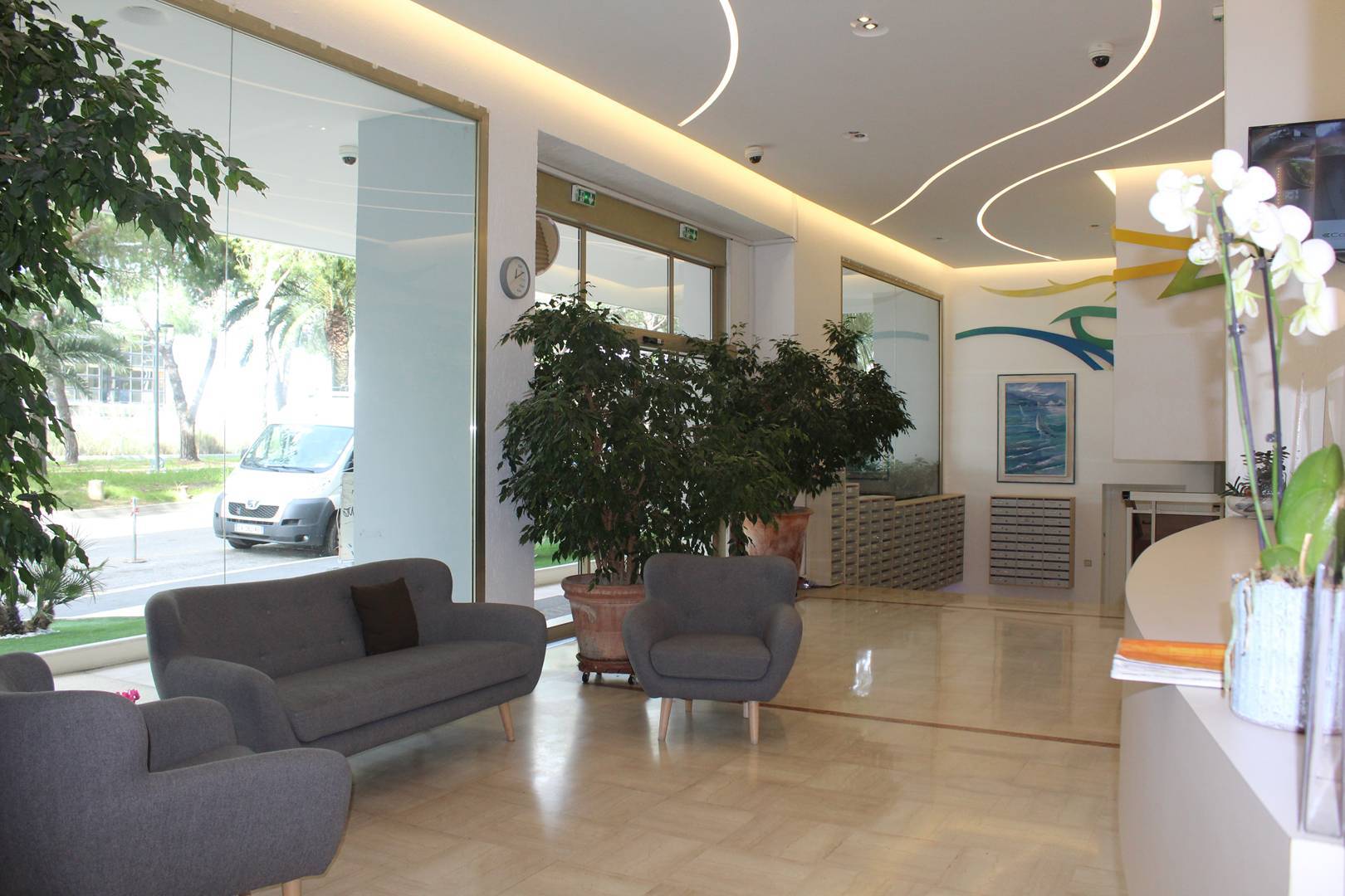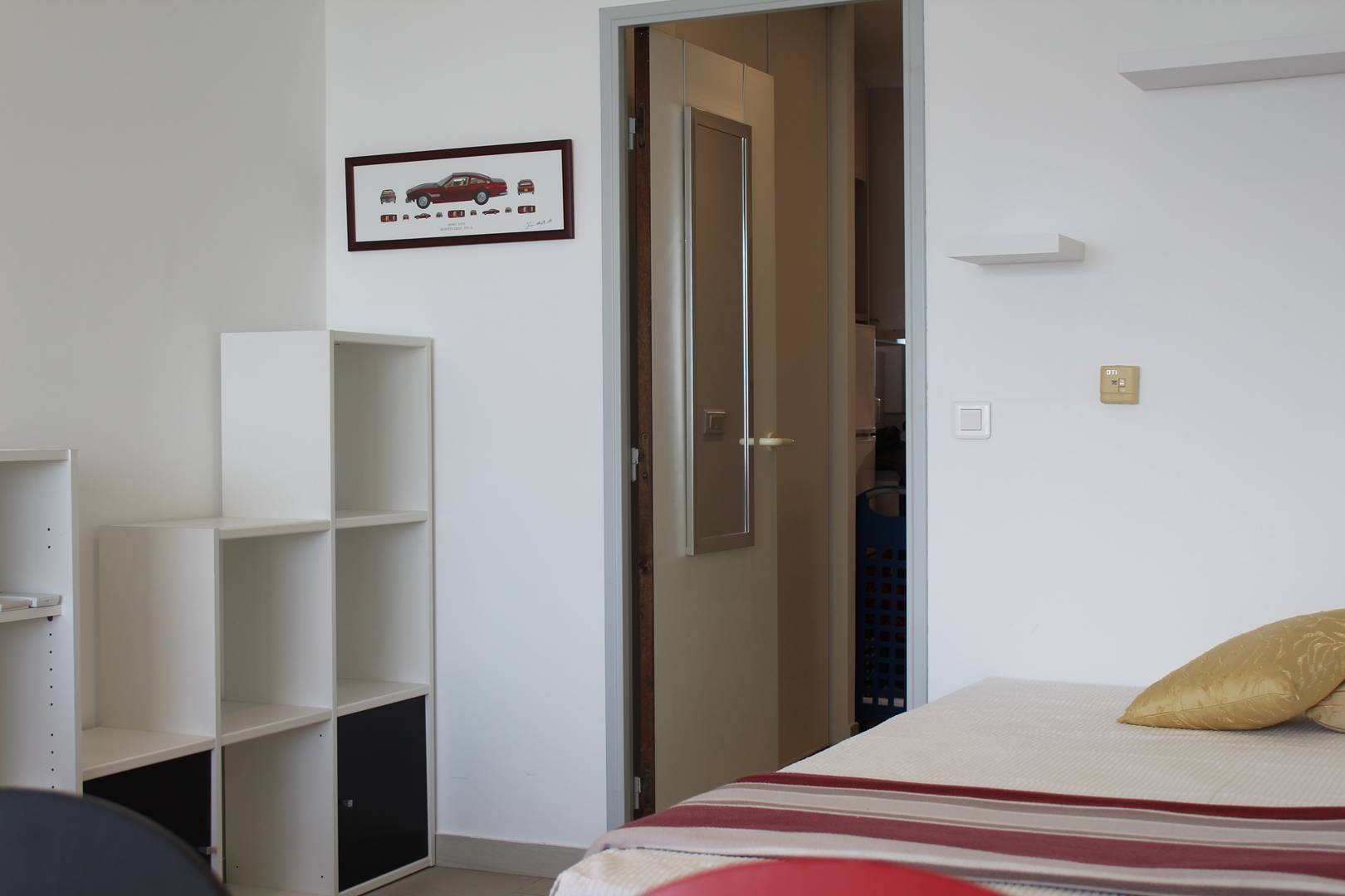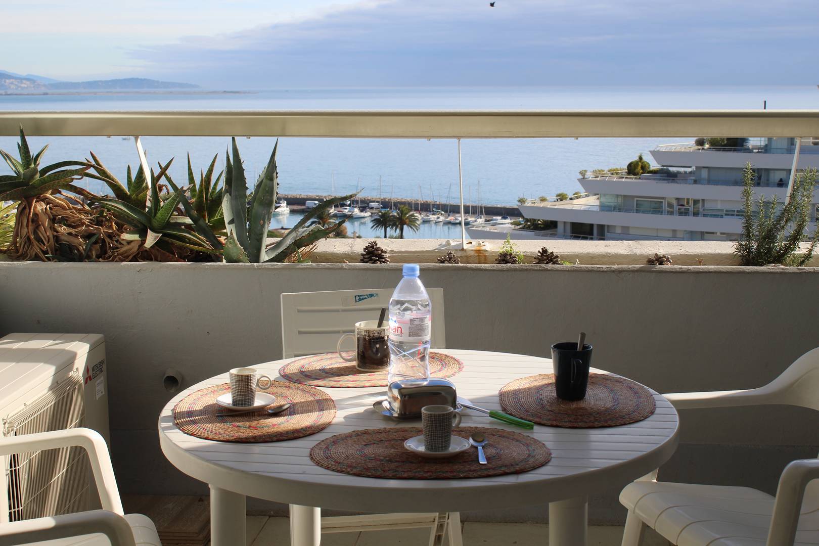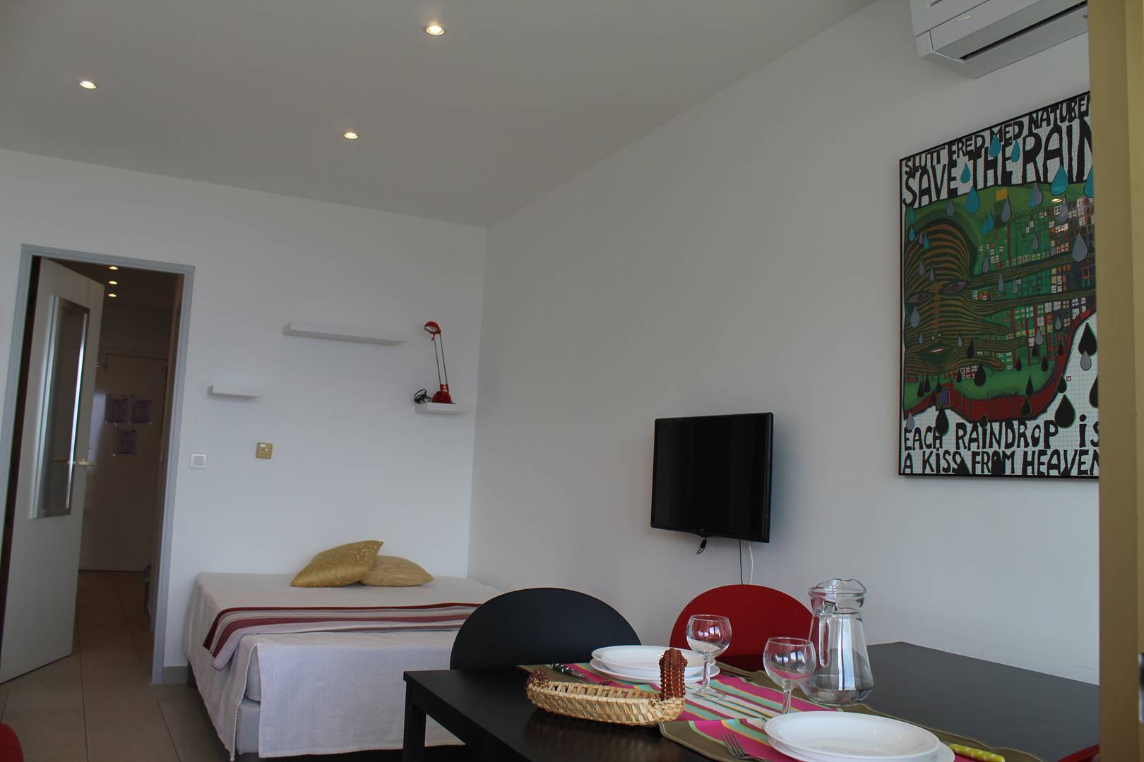 Cet appartement en étage élevé est composé à l’entrée, d’une cuisine indépendante moderne tout équipée, dans la pièce principale qui est climatisé, vous trouverez un joli coin repas , un canapé convertible donnant sur une terrasse avec une vue magnifique sur la méditerranée.