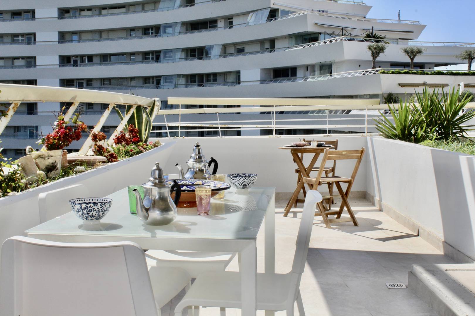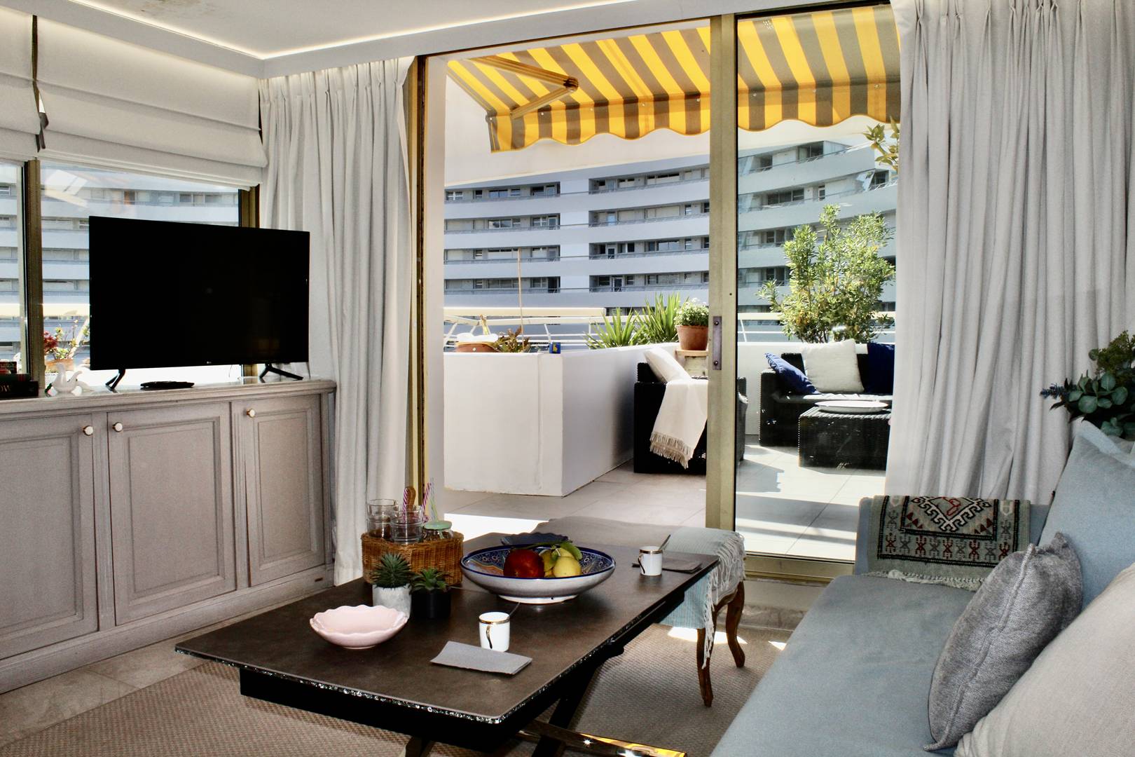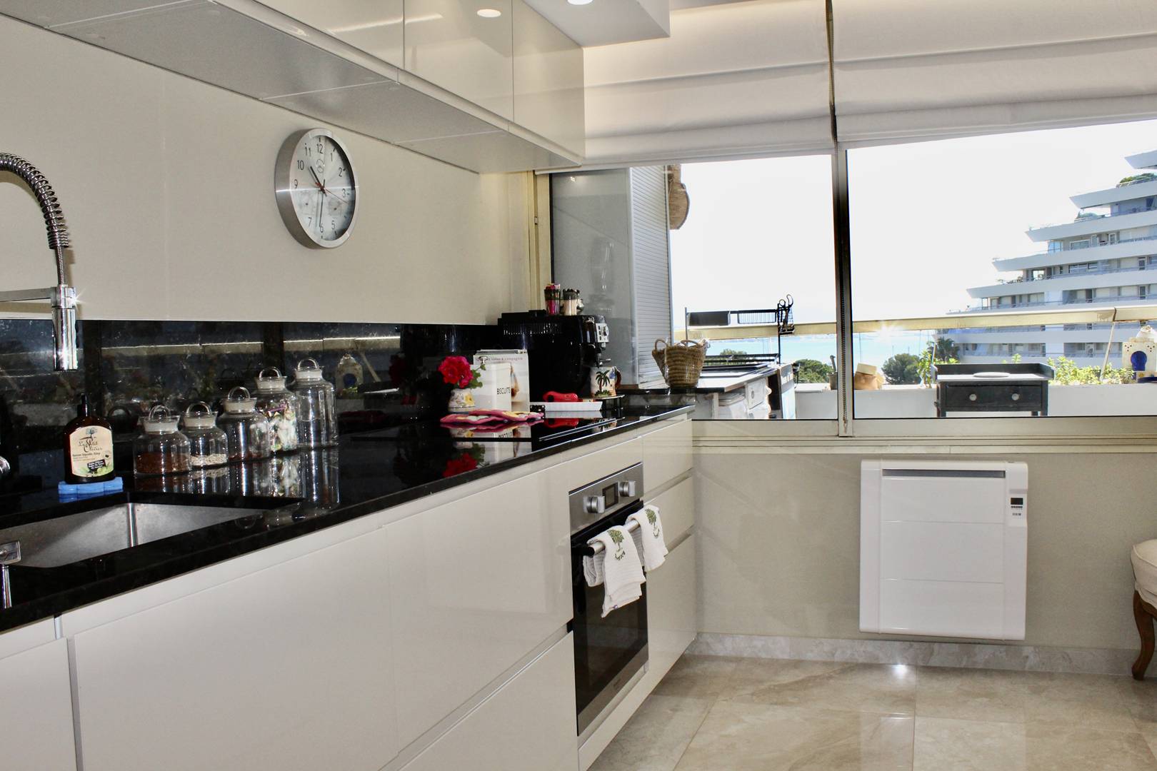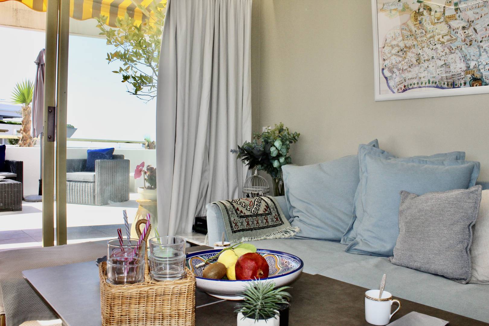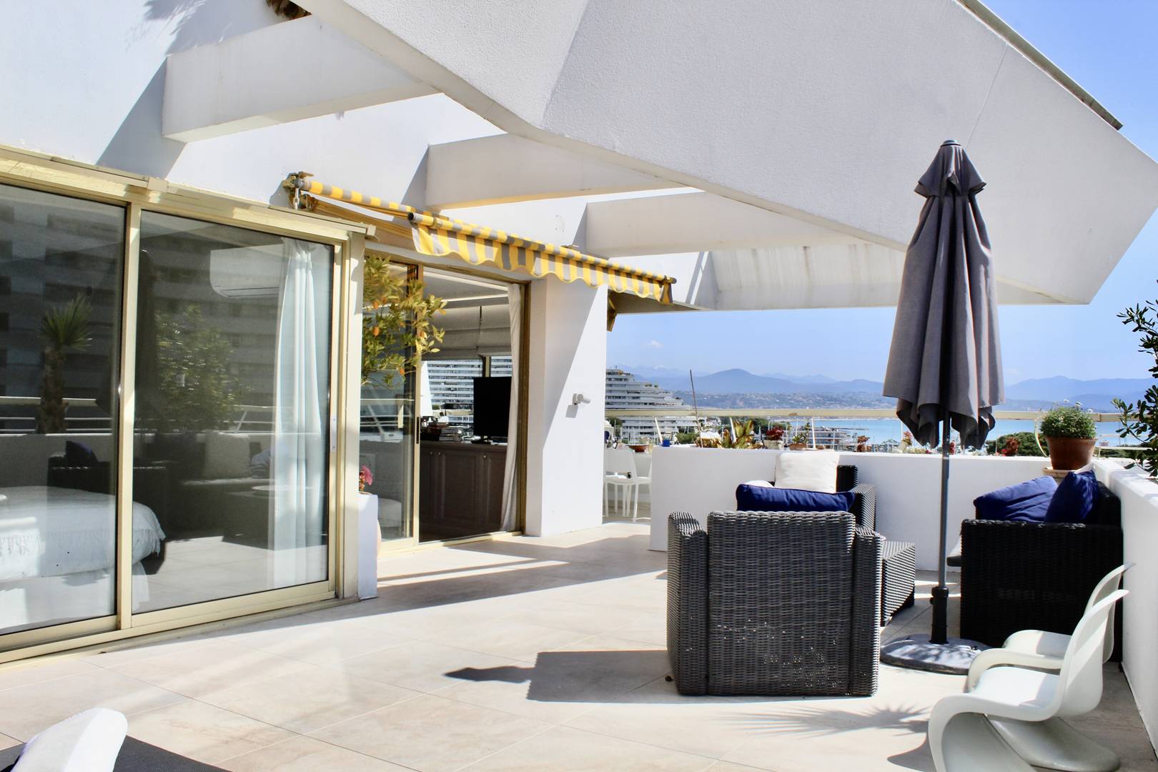 Le plus de ce logement : Cet appartement unique offre une resplendissante terrasse d’angle avec une vue exceptionnelle du Cap d’Antibes à Nice.