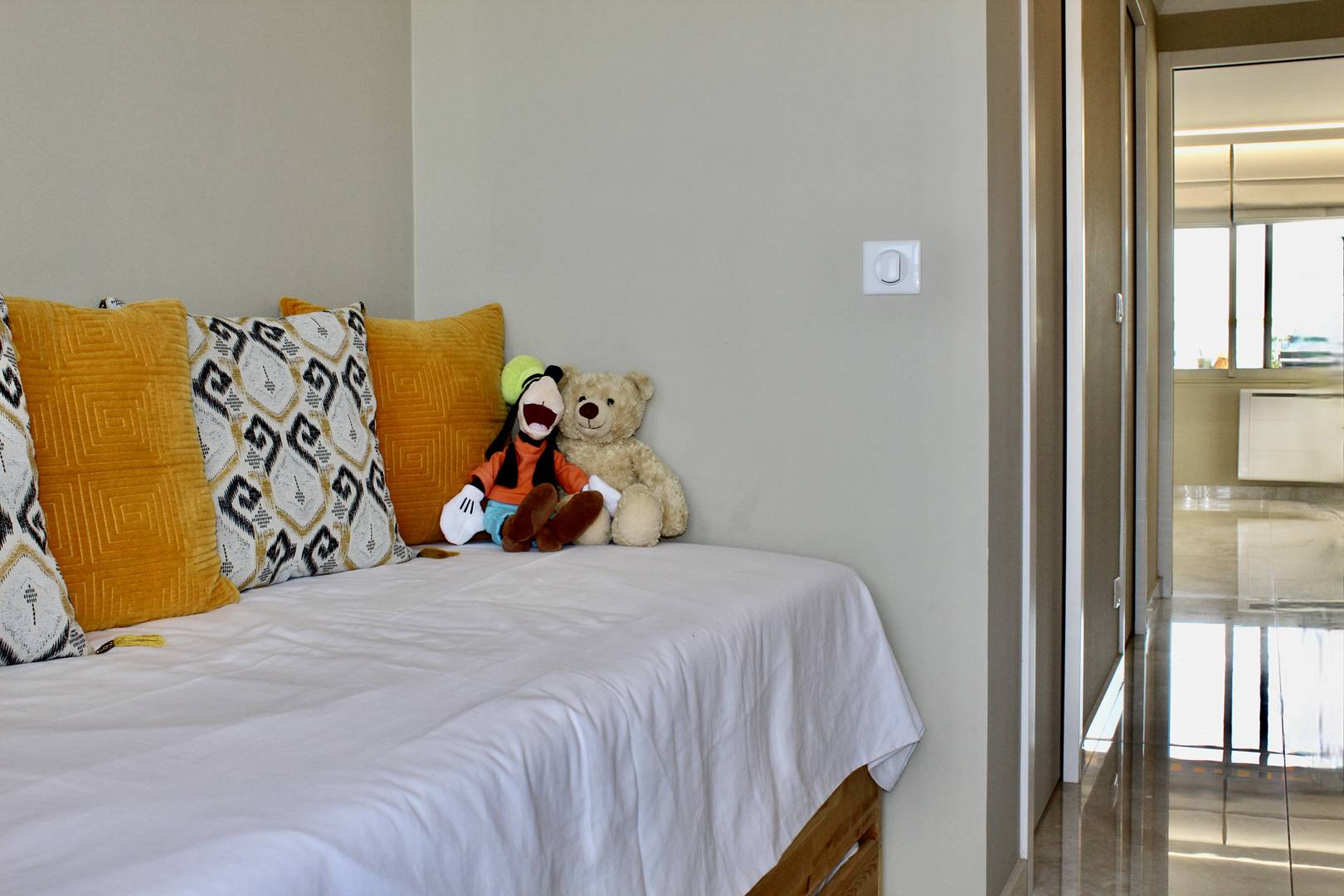 Dans la résidence le Baronnet, vous trouverez un exceptionnel appartement d’angle entièrement climatisé d’une superficie de 57m² au 4e étage avec son immense terrasse de 60m² et sa cuisine d’été. Il est composé à l’entrée d’un coin nuit, à votre droite une salle de douche au design moderne, avec ses toilettes séparées. De plus, l’appartement dispose d’une chambre en façade Sud avec accès sur la terrasse d’angle qui offre une vue imprenable sur la mer méditerranée et les jardins verdoyants de la résidence. Un salon avec coin télévision écran plat et wifi, canapé convertible en 160 cm et sa cuisine moderne entièrement équipé, lave-linge, lave-vaisselle, le tout ouvrant sur la terrasse avec vue mer. Le linge de maison n’est pas fourni. Le ménage de fin de séjour est inclus.