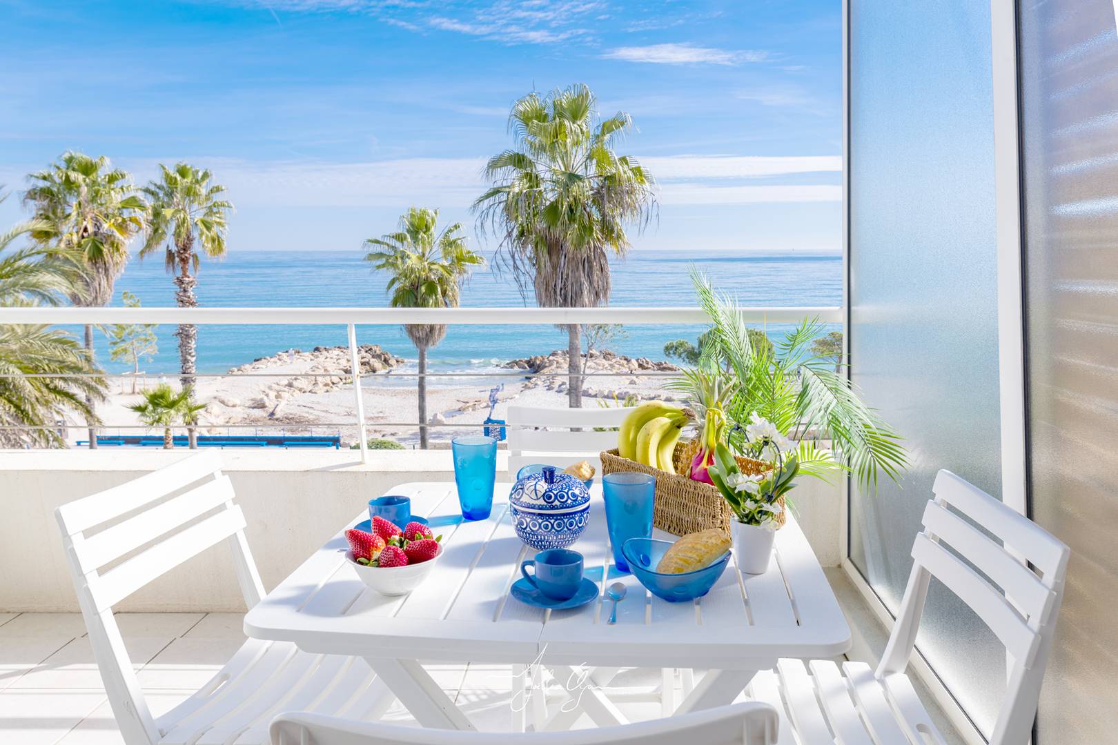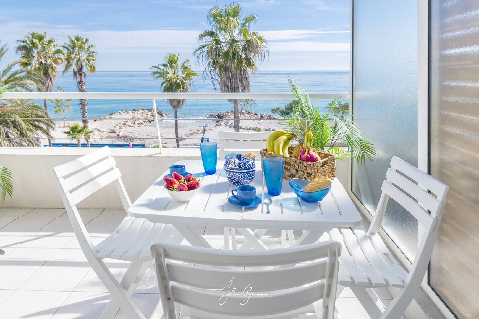 Résidence située sur la plage (plage de sable aménagée), à proximité du port de Marina Baie des Anges, Hippodrome de Cagnes sur Mer, de la ballade aux bords du Loup (rivière) etc...