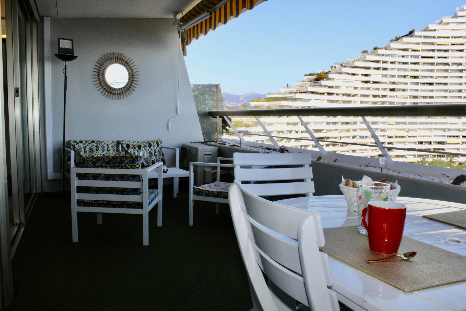 Situé dans une résidence « Le Commodore « de haut standing sécurisée et avec gardien à Marina Baie des Anges au bord de la mer.