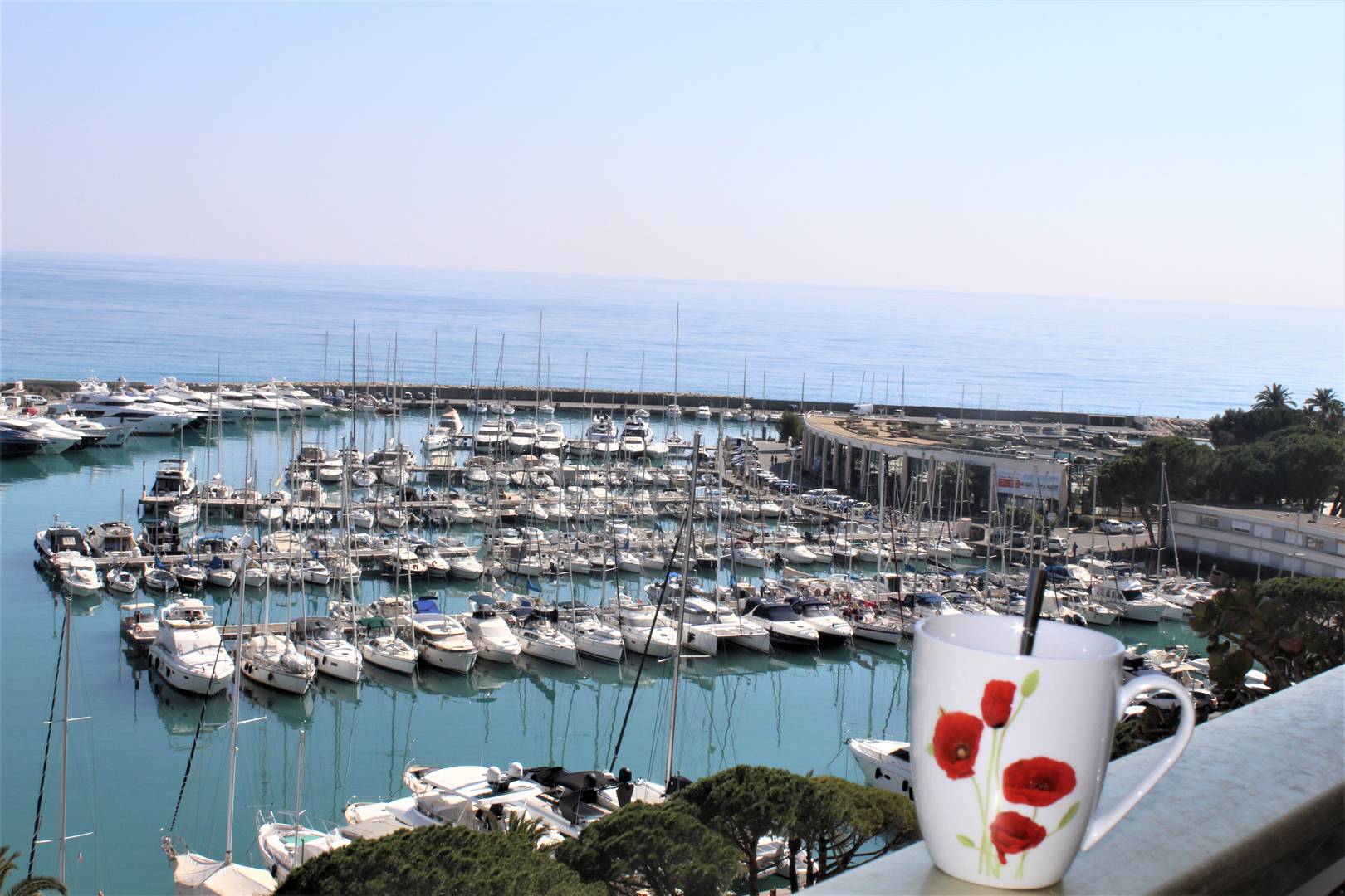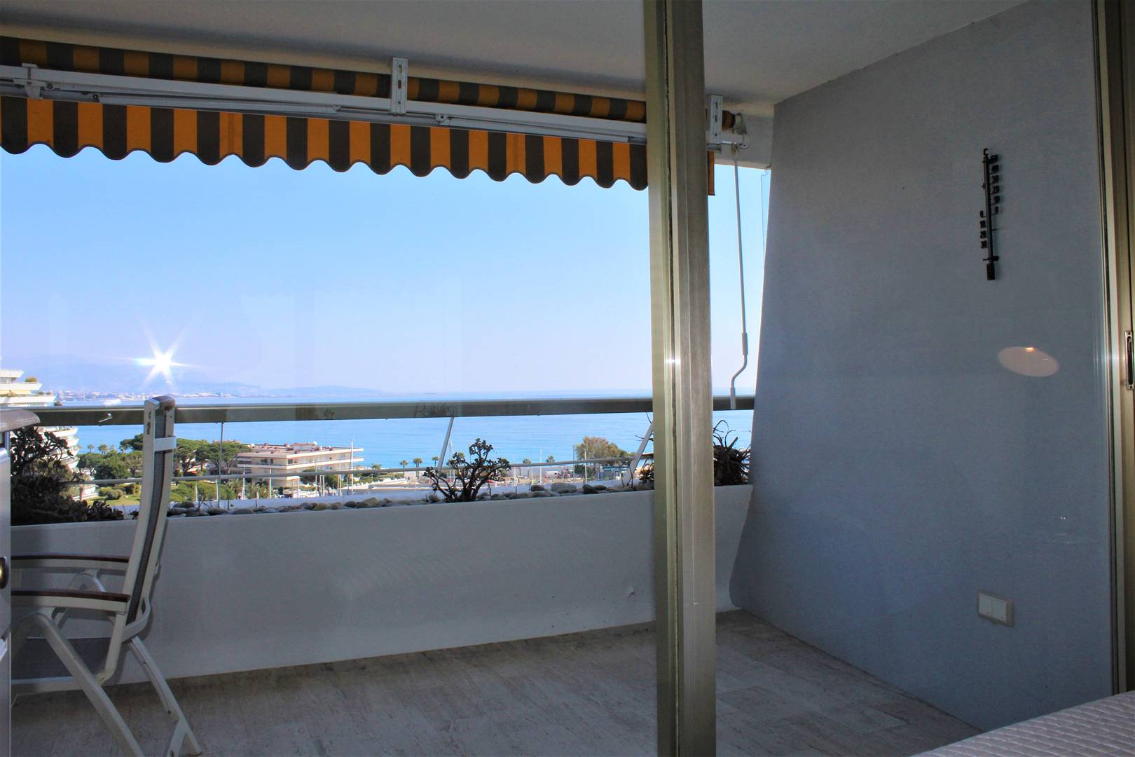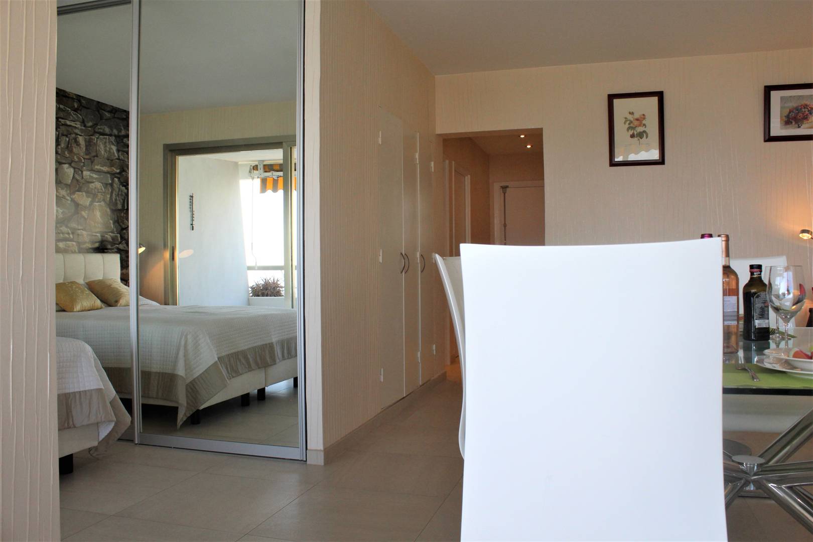 Très bel appartement moderne au 7 eme étage avec ascenseur. Il propose à l’entrée une cuisine moderne toute équipée (lave-vaisselle, lave-linge, cafetière Nespresso, micro-onde). Une chambre coté coursive avec un lit en couchage de 160 cm. Un vaste séjour avec canapé spacieux et confortable, son coin repas vue Mer. Une salle de douche à l’italienne et un toilette séparé. Une seconde chambre avec télévision, Wifi, couchage de 160 cm vue Mer. Une très grande terrasse avec une vue dégagée sur la méditerranée. Garage et ménage fin de séjour inclus.