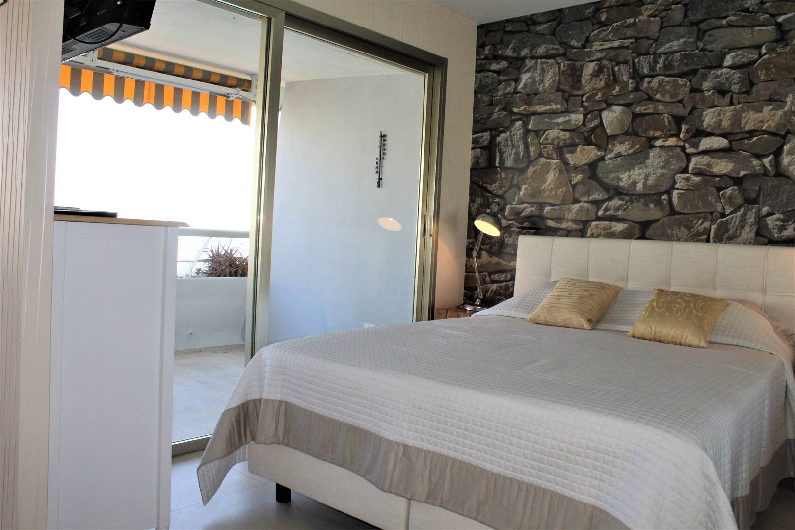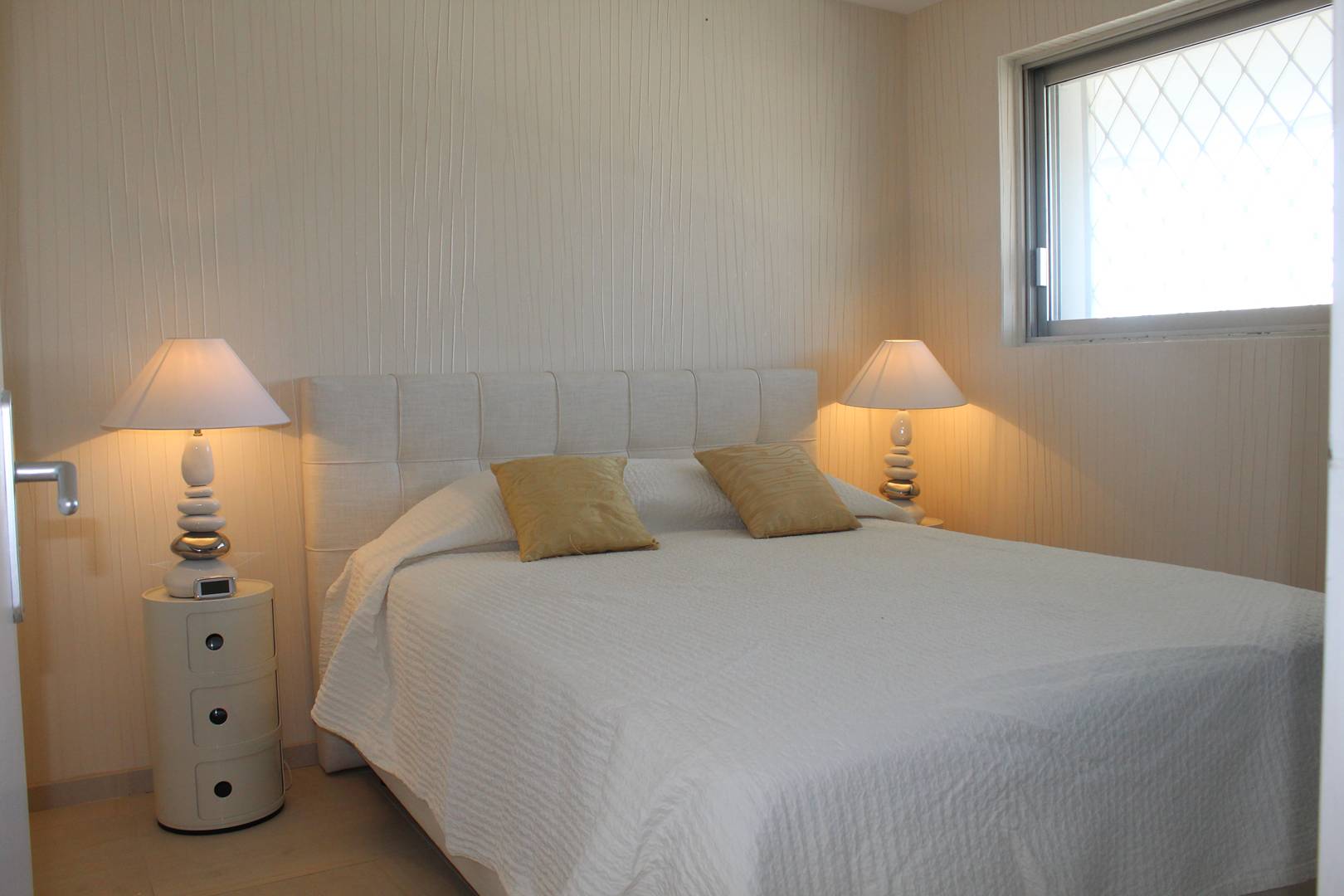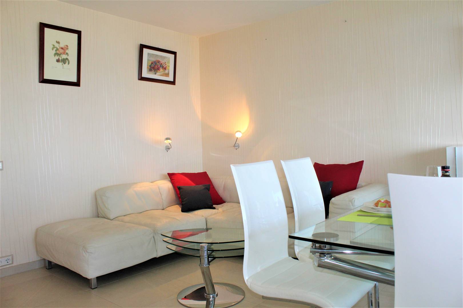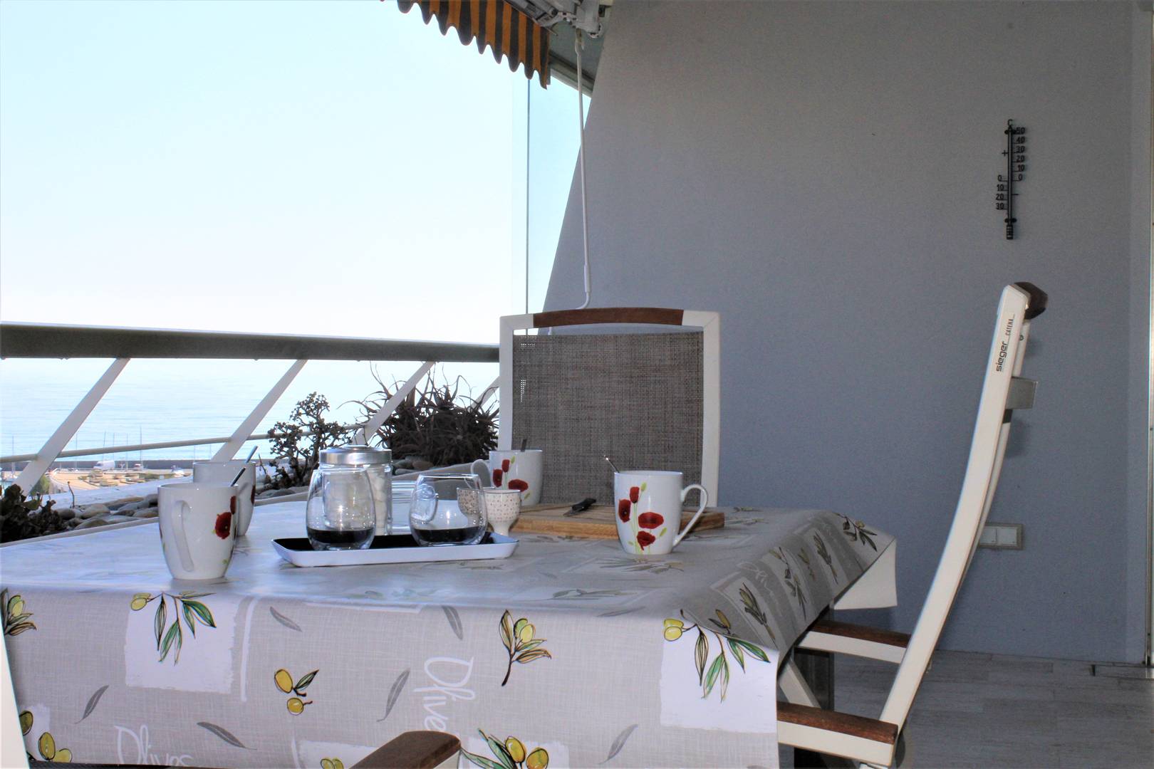 Très bel appartement moderne au 7 eme étage avec ascenseur. Il propose à l’entrée une cuisine moderne toute équipée (lave-vaisselle, lave-linge, cafetière Nespresso, micro-onde). Une chambre coté coursive avec un lit en couchage de 160 cm. Un vaste séjour avec canapé spacieux et confortable, son coin repas vue Mer. Une salle de douche à l’italienne et un toilette séparé. Une seconde chambre avec télévision, Wifi, couchage de 160 cm vue Mer. Une très grande terrasse avec une vue dégagée sur la méditerranée. Garage et ménage fin de séjour inclus.