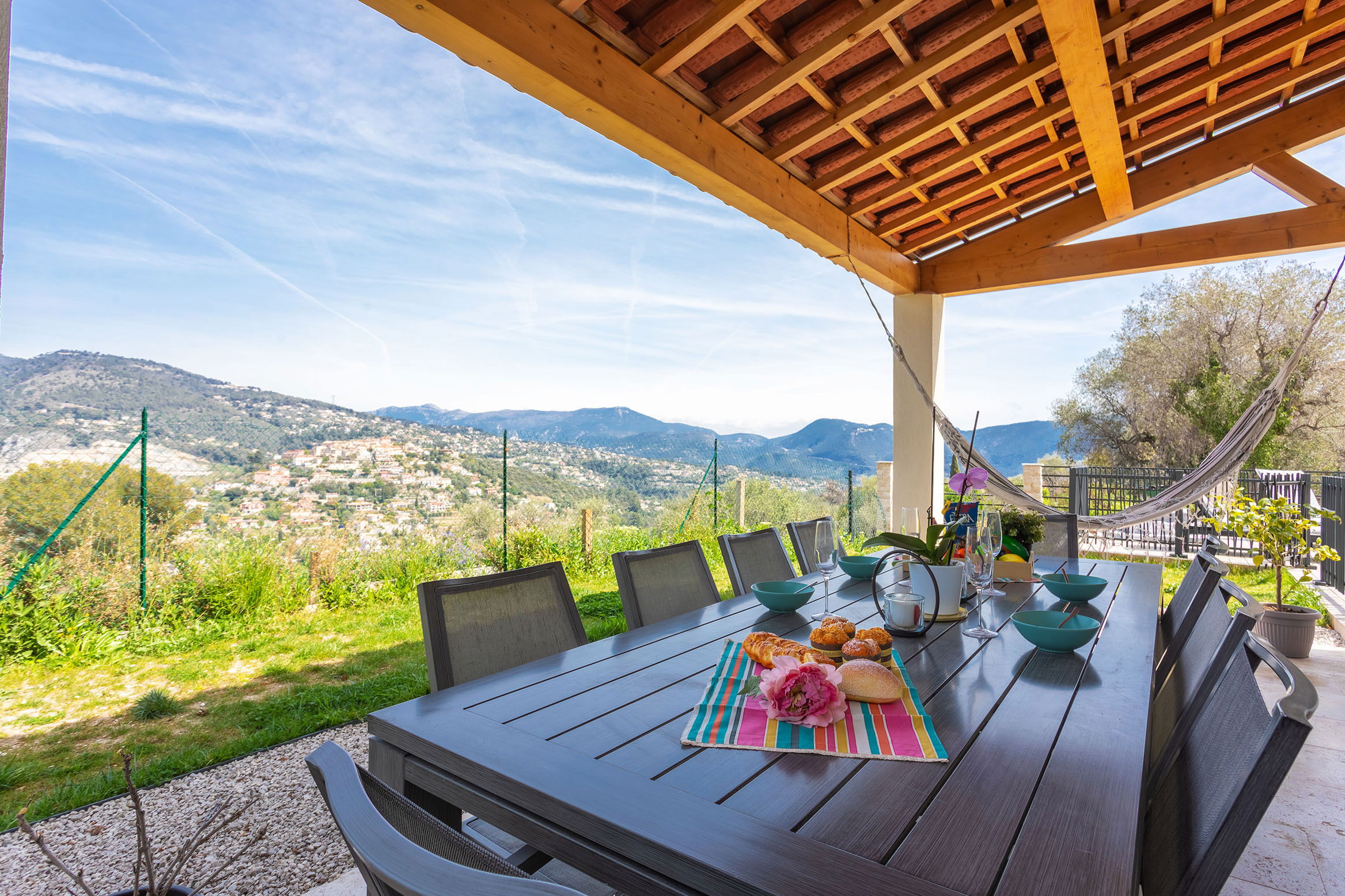 Située à 5 mn des commerces de proximité, à 10 minutes du centre ville de Nice, la villa est au calme et bénéficie d’une vue dégagée sur le village et les collines environnantes.