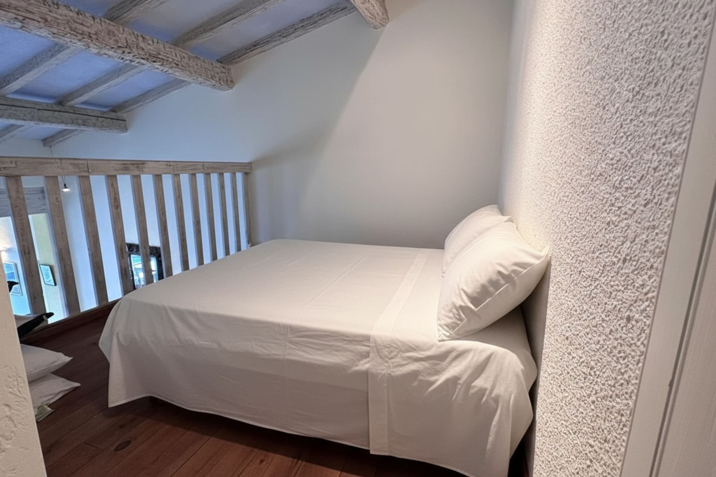 • Une mezzanine ouverte avec coin salon, lit supplémentaire et point d’eau